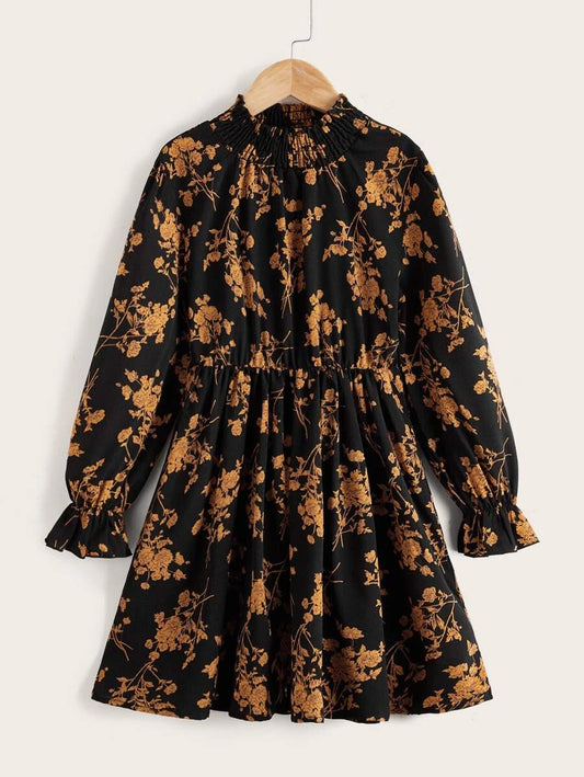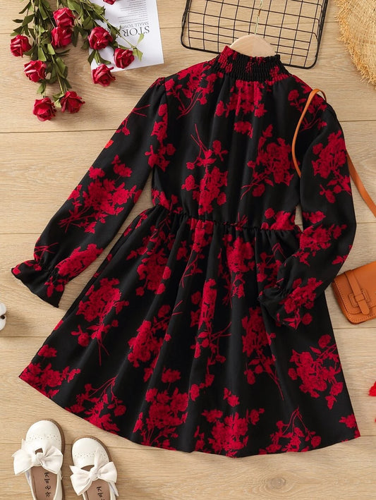SHEIN فستان بنات طبعة زهرية بتفصيل الكشكشة وتنو...