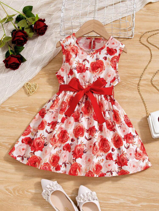 SHEIN فستان بنات حمالة للأطفال مطبوع بزخارف الورود
