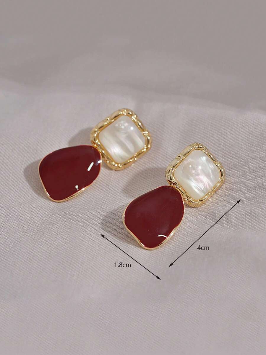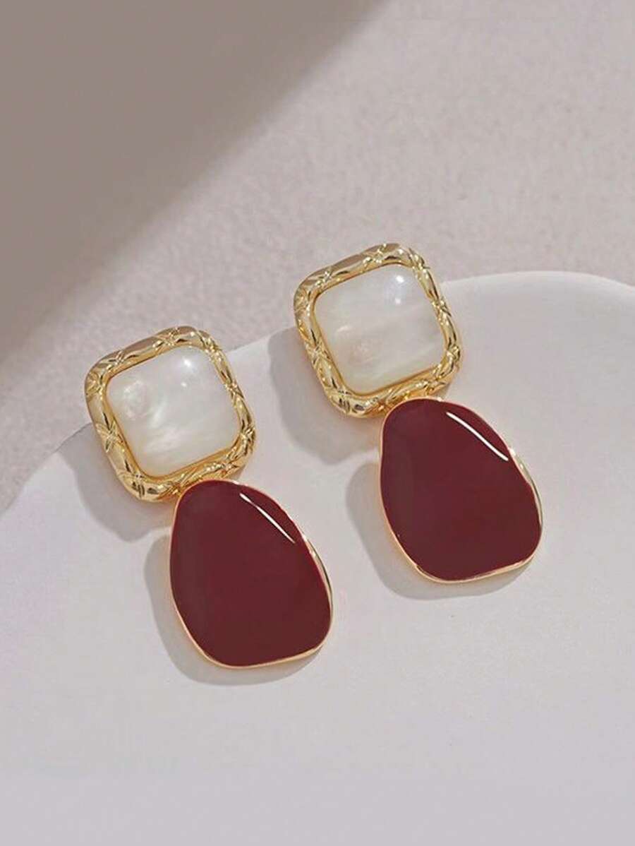 إطلالة عصرية مع أقراط متدلية بتصميم مربع من سبائك الزنك بلون عنابي يضفي لمسة من التميز