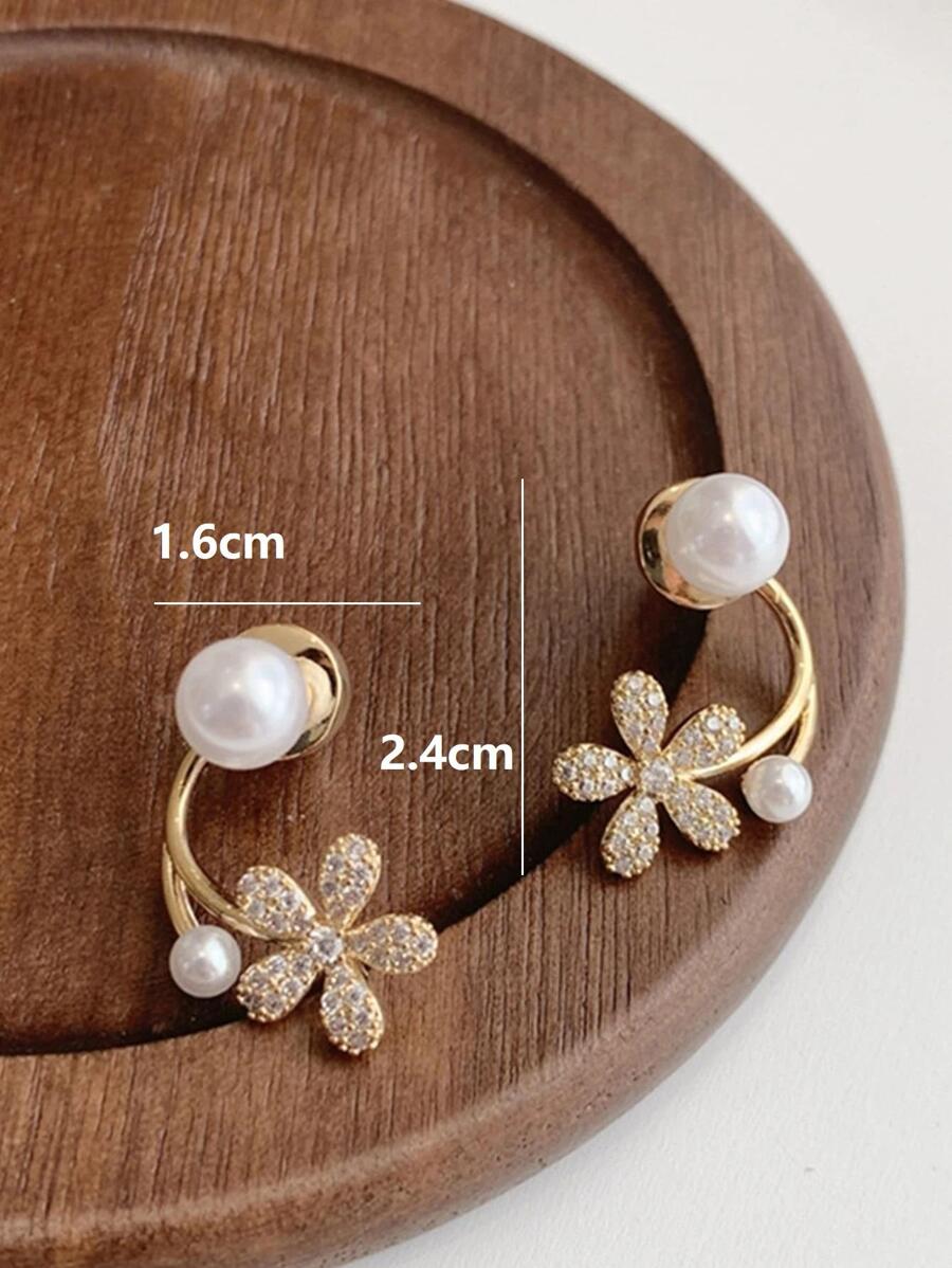 SHEIN زوج أقراط بتصميم زهرة مزينة براين ولمسات لؤلؤ صناعي