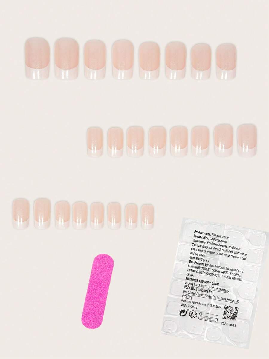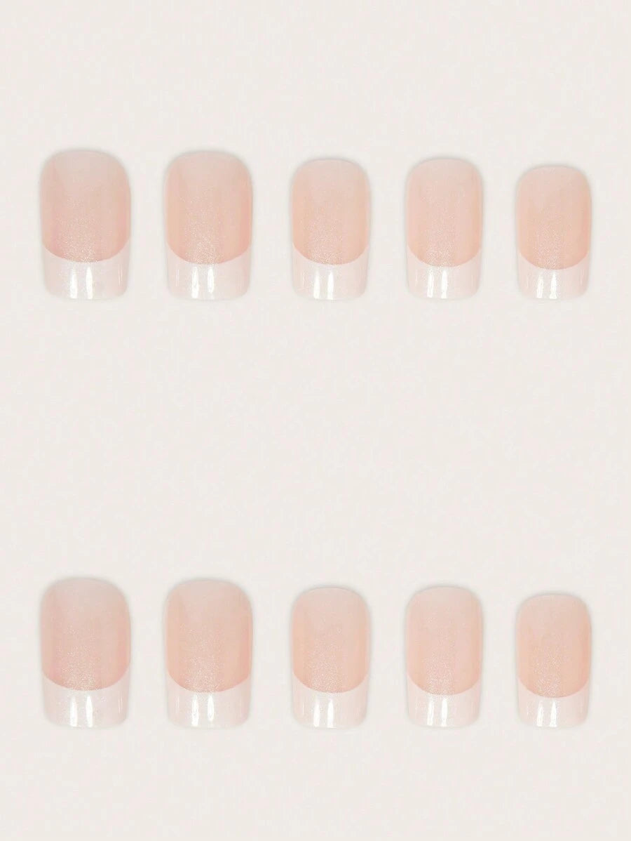 SHEIN مجموعة أظافر 24 قطعة متوسطة فرنسية بيضاء وبريق وردي