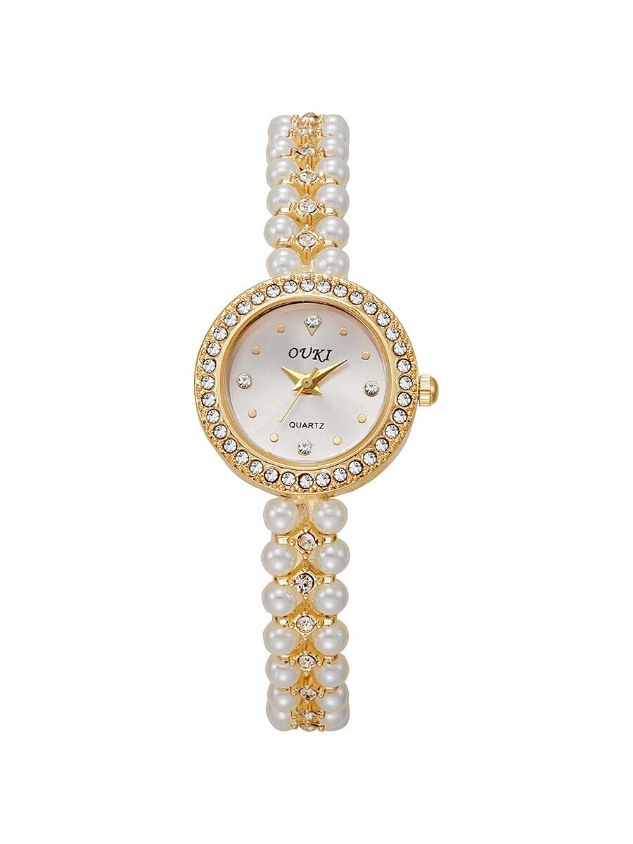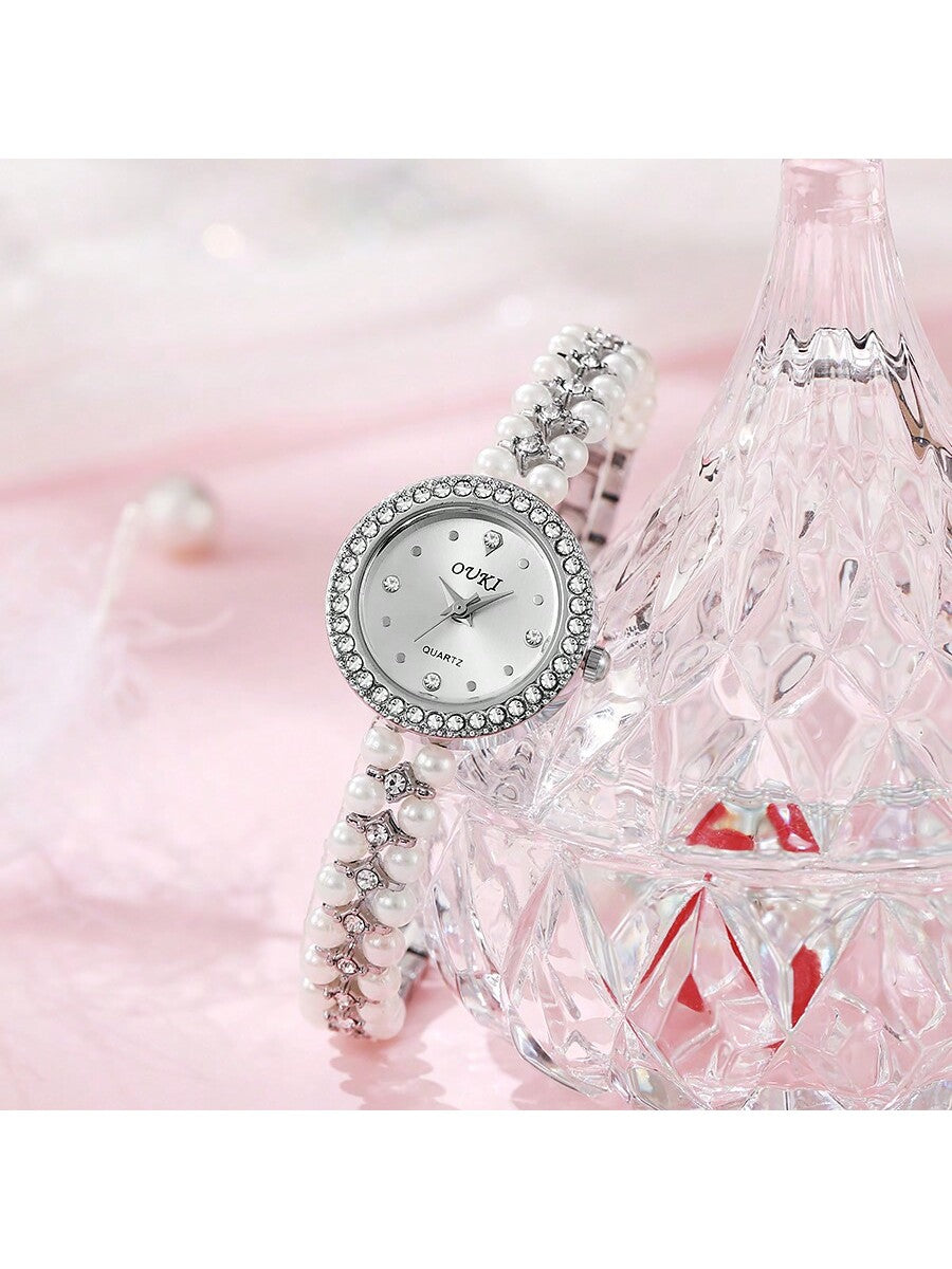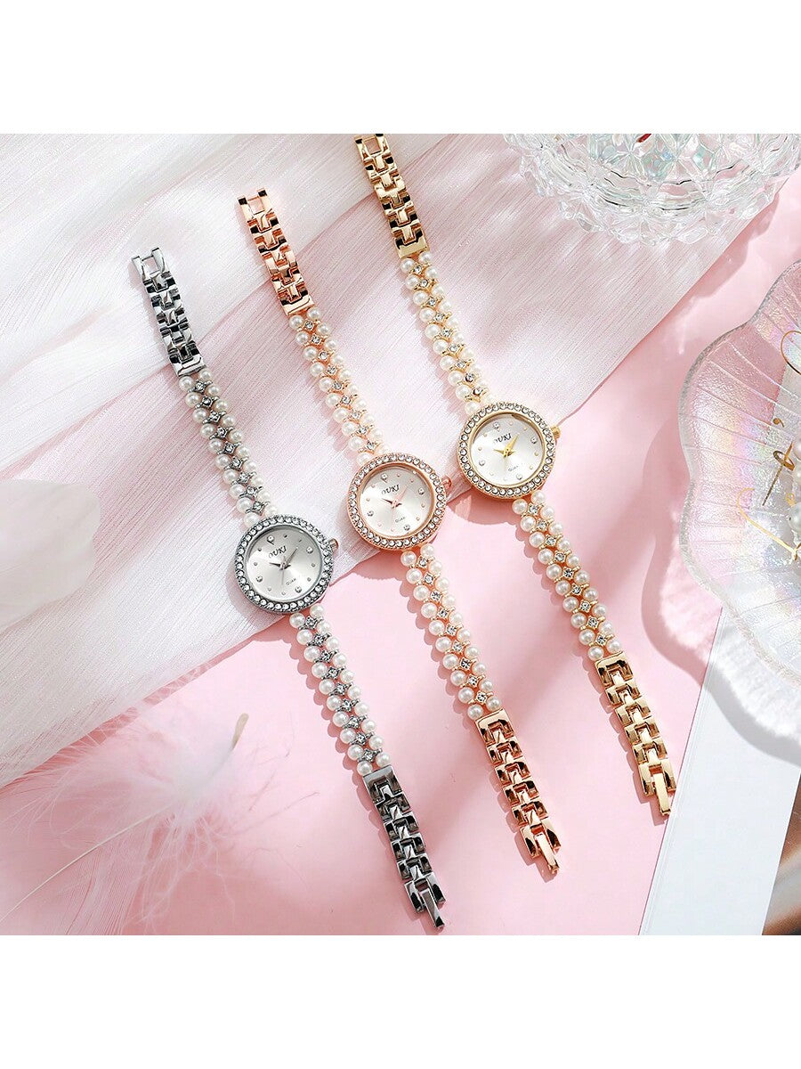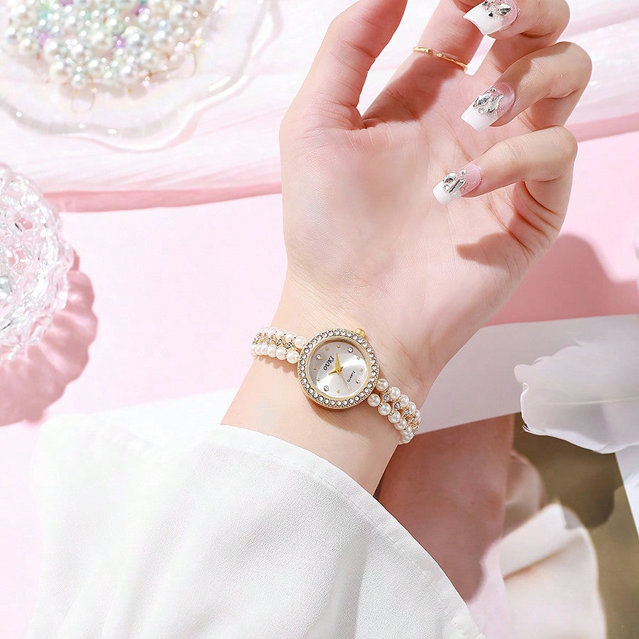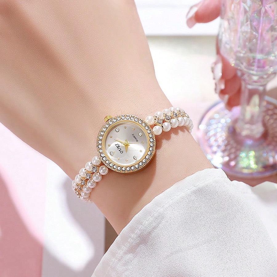سوار ساعة ذات مظهر عصري كاجوال هدية عيد الحب للنساء، سوار من اللؤلؤ وحالة معدنية، هدية للصديقة والأم والابنة وهدية عيد الأم