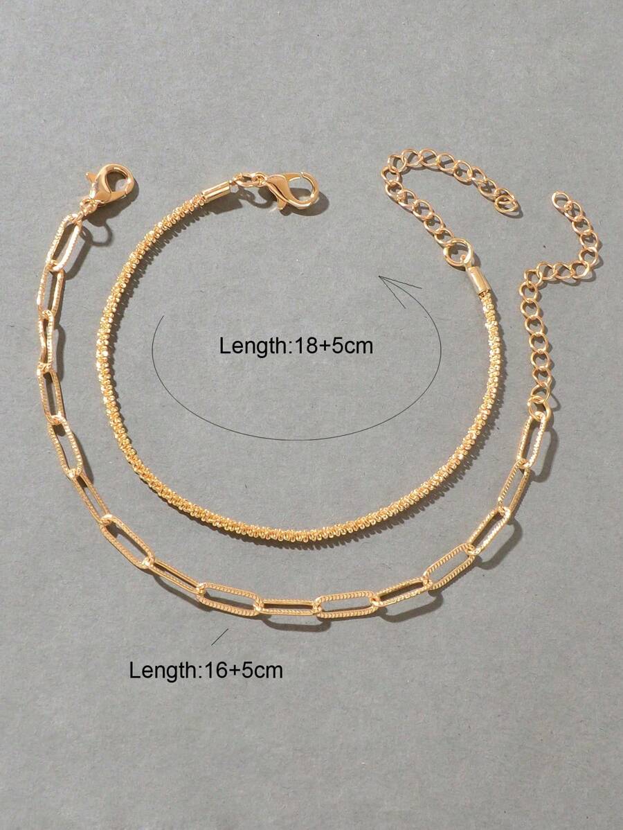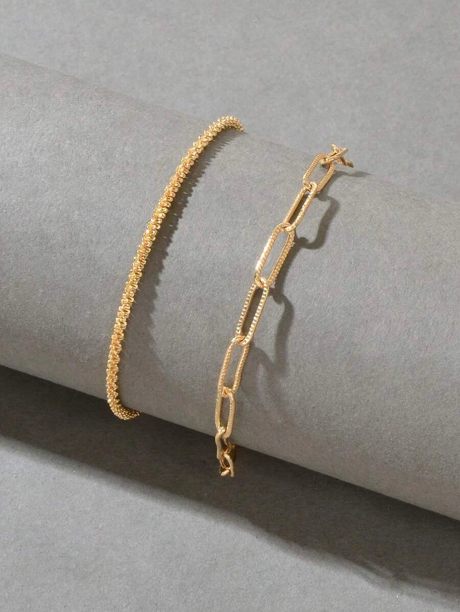 SHEIN مجموعة سوار 2 قطعة سلسة باللون الذهبي