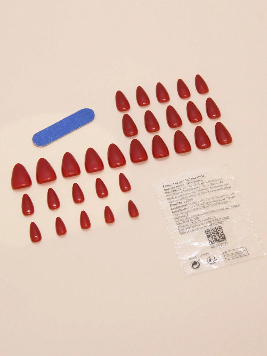 SHEIN طقم أظافر بشكل لوزي بلون أحمر داكن أنيق