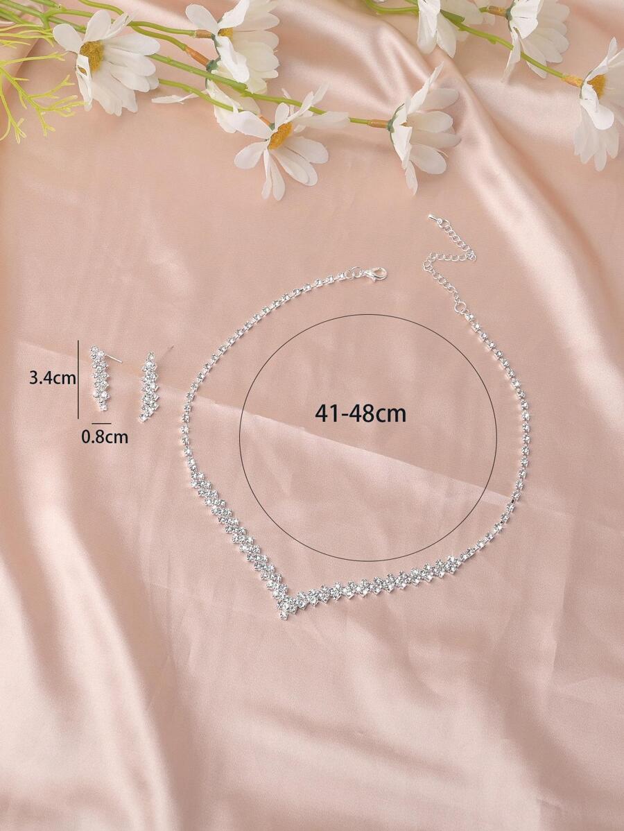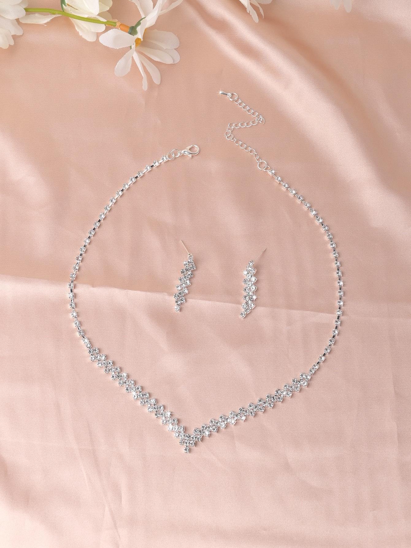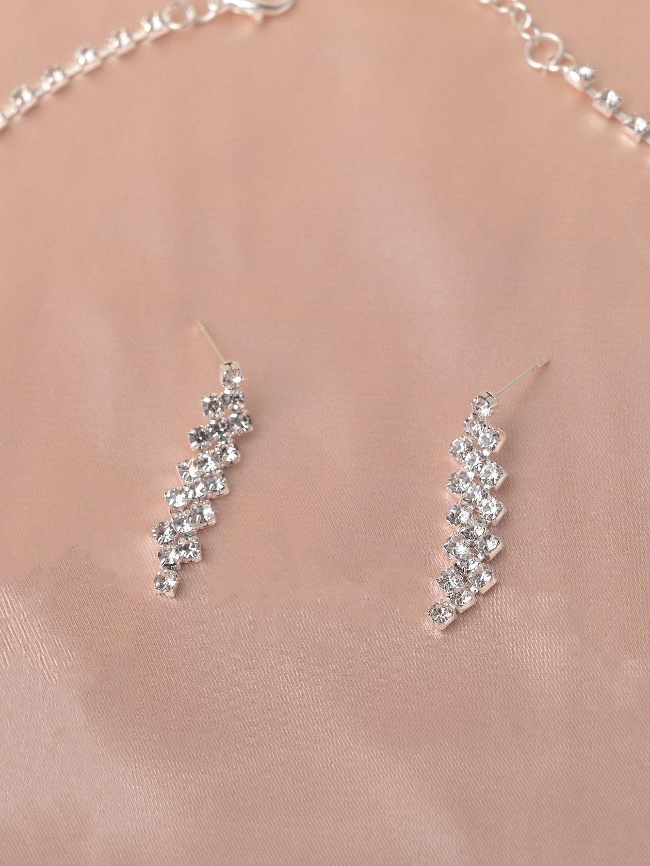 SHEIN طقم قلادة وأقراط فضي مرصع بأحجار الراين الفاخرة
