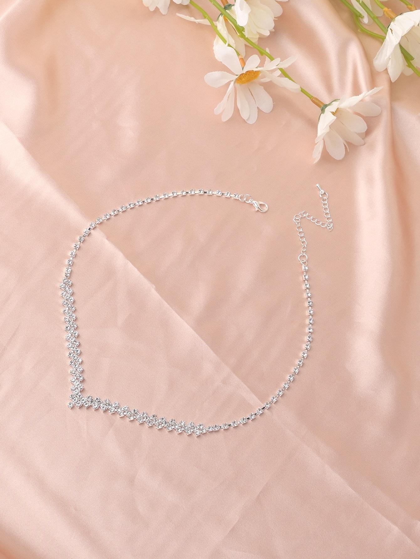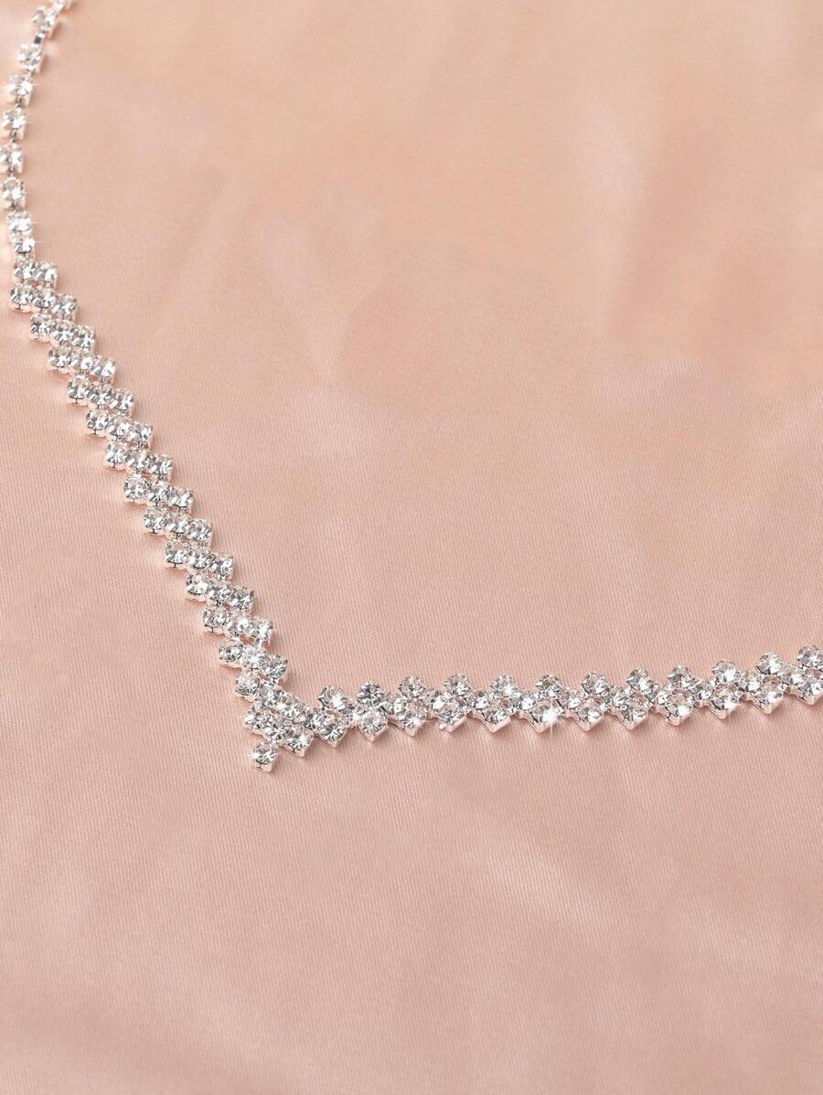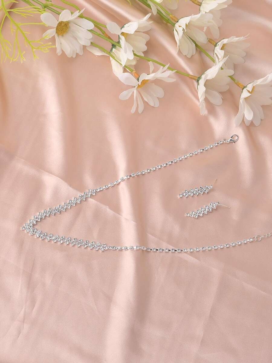 SHEIN طقم قلادة وأقراط فضي مرصع بأحجار الراين الفاخرة