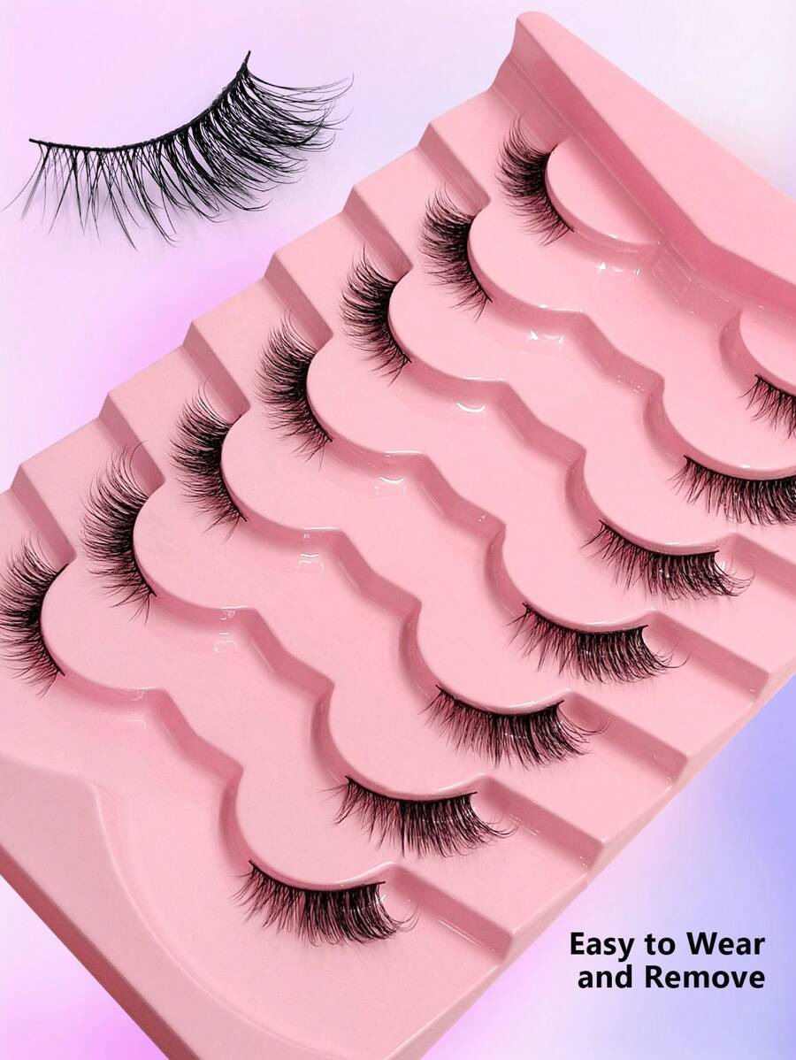 SHEIN Asiteo رموش 7 أزواج نصفية طبيعية ذيل عين القطة