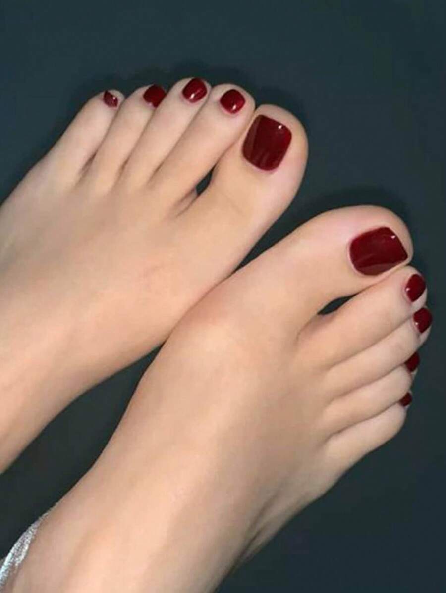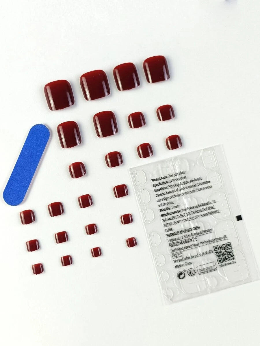 💅✨ SHEIN مجموعة أظافر اصطناعية قصيرة مربعة باللون الأحمر الداكن