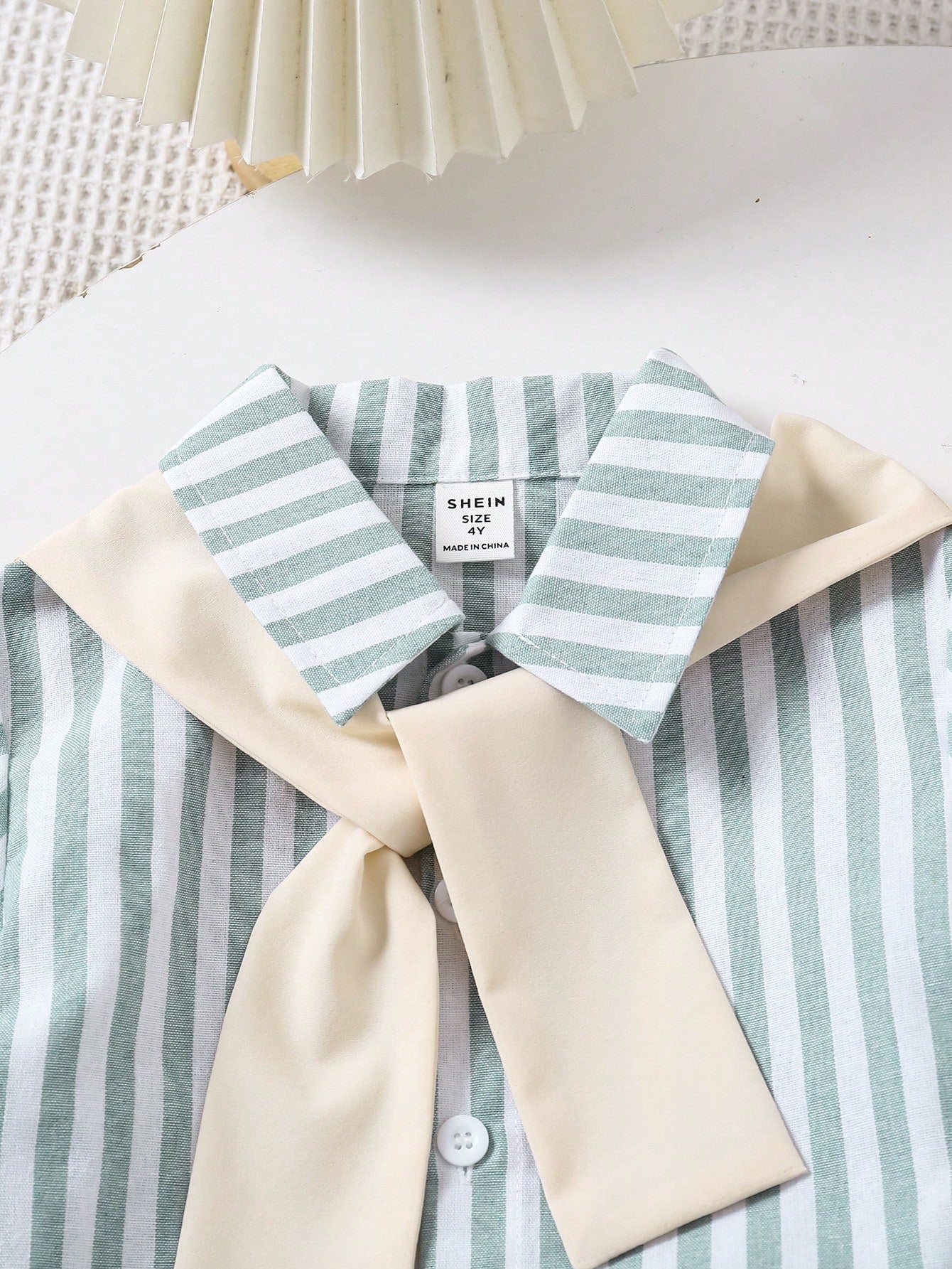 مجموعة فانيلة بتصميم شريطي بياقة واحدة وبنطلون مع وشاح للأولاد الصغار مناسبة للشتاء والخريف والربيع ذات طراز متناسق