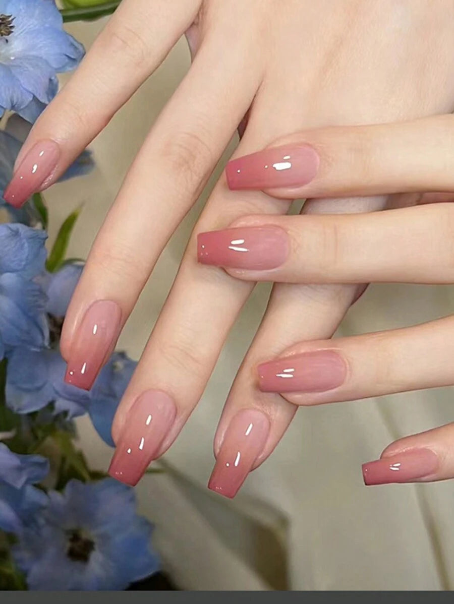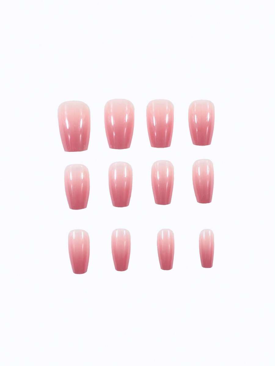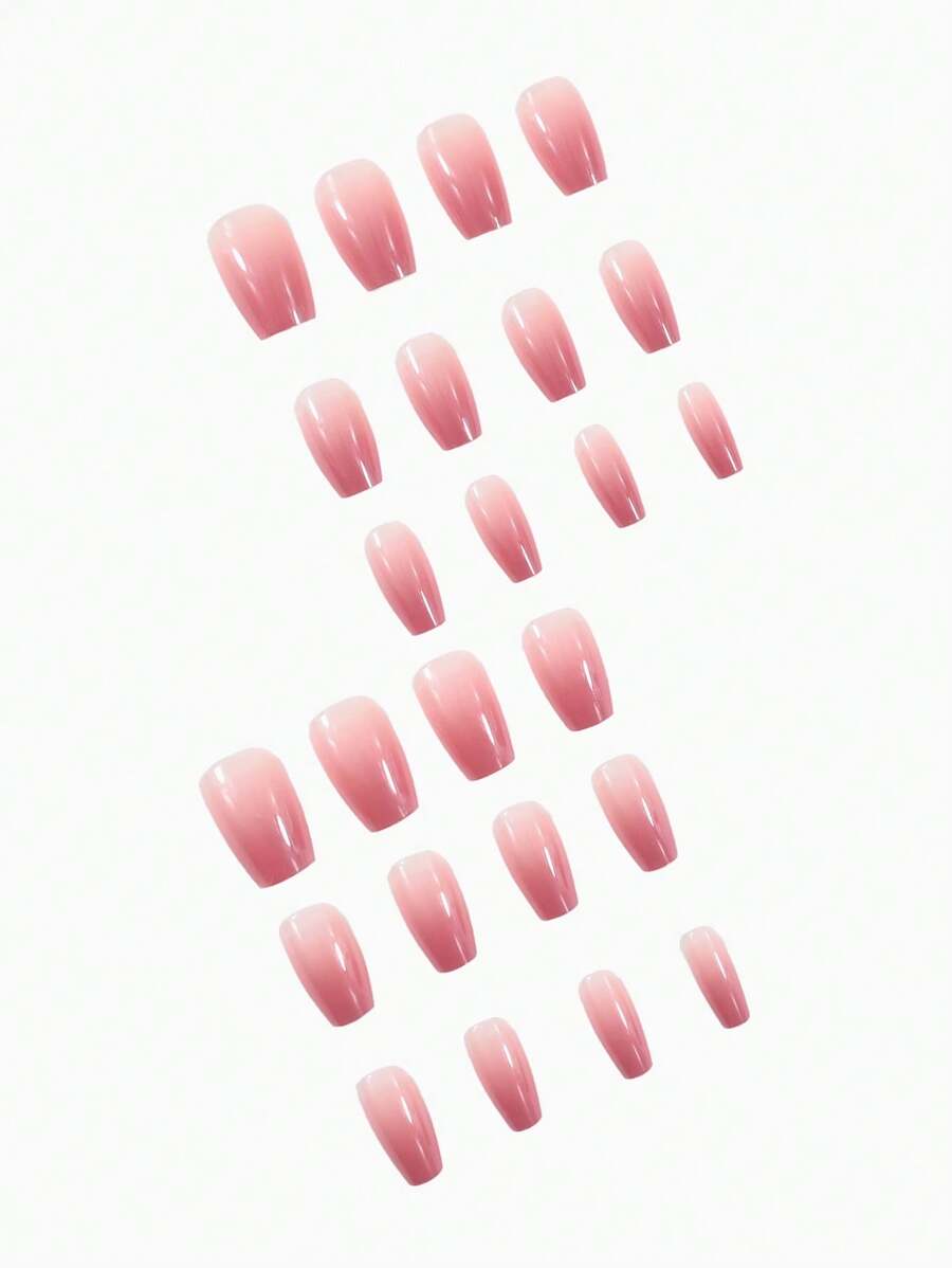 SHEIN أضافر متوسطة بتدرج خوخي (24 قطعة) معها لاصقة ومبرد أضافر