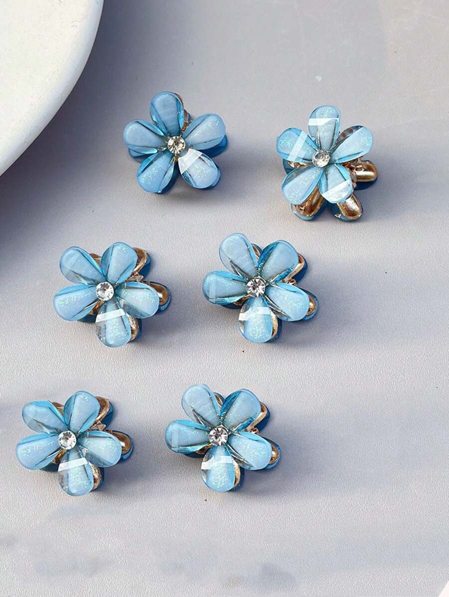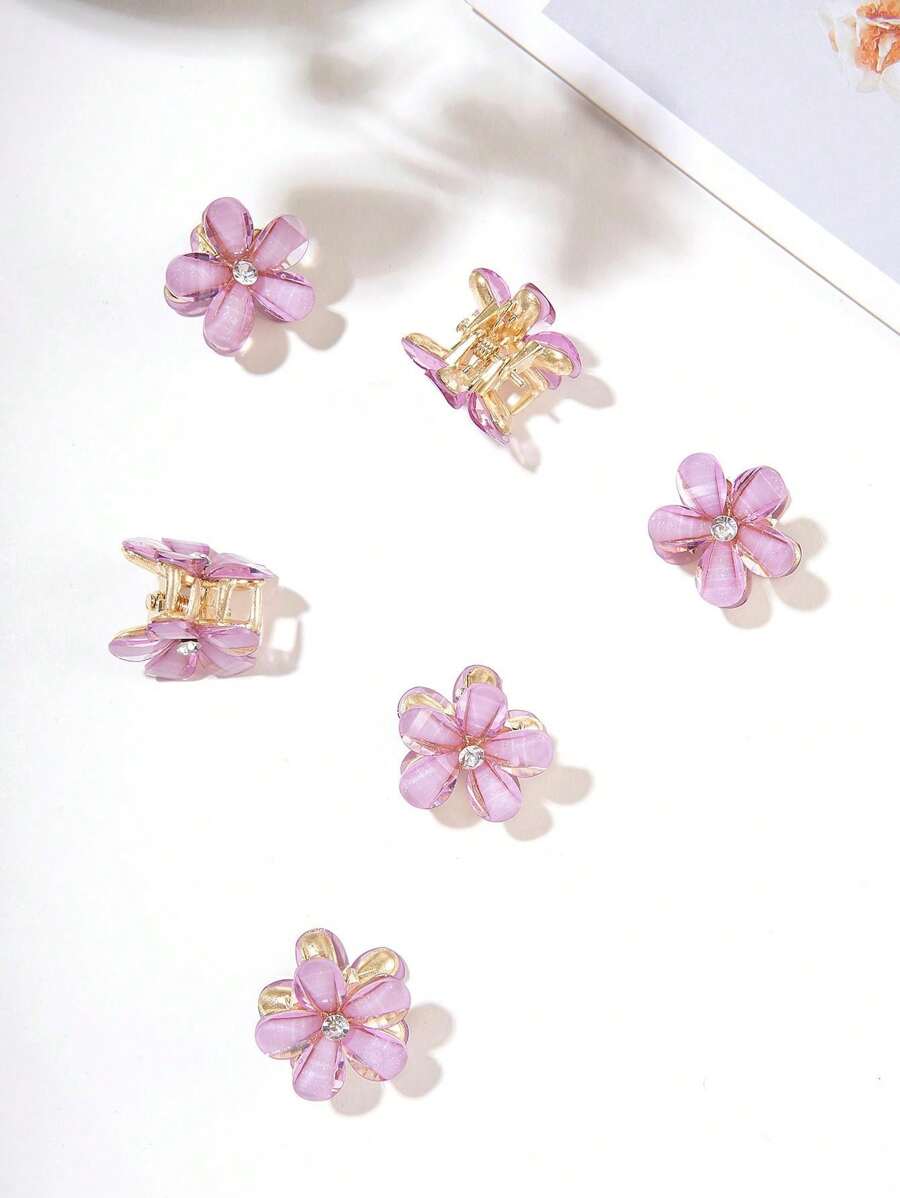 🌸 مجموعة مشابك شعر معدنية مزينة بالبلورات