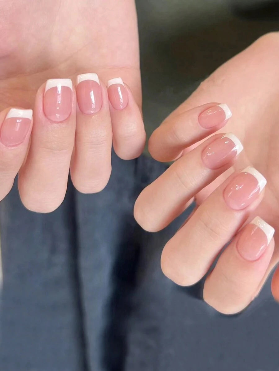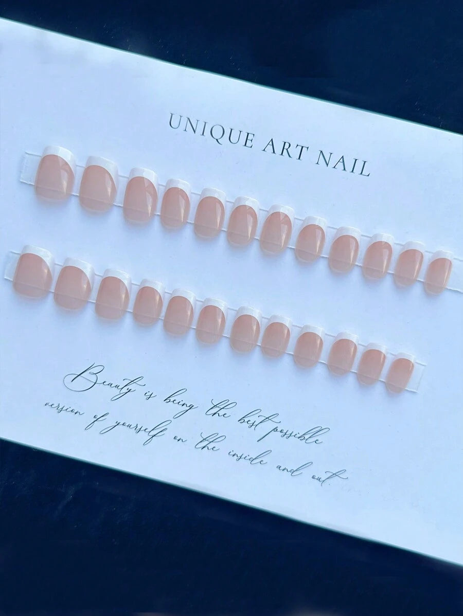 مجموعة أظافر قصيرة بتدرجات وردي وأبيض – 24 قطعة شكل مربع 🎀✨