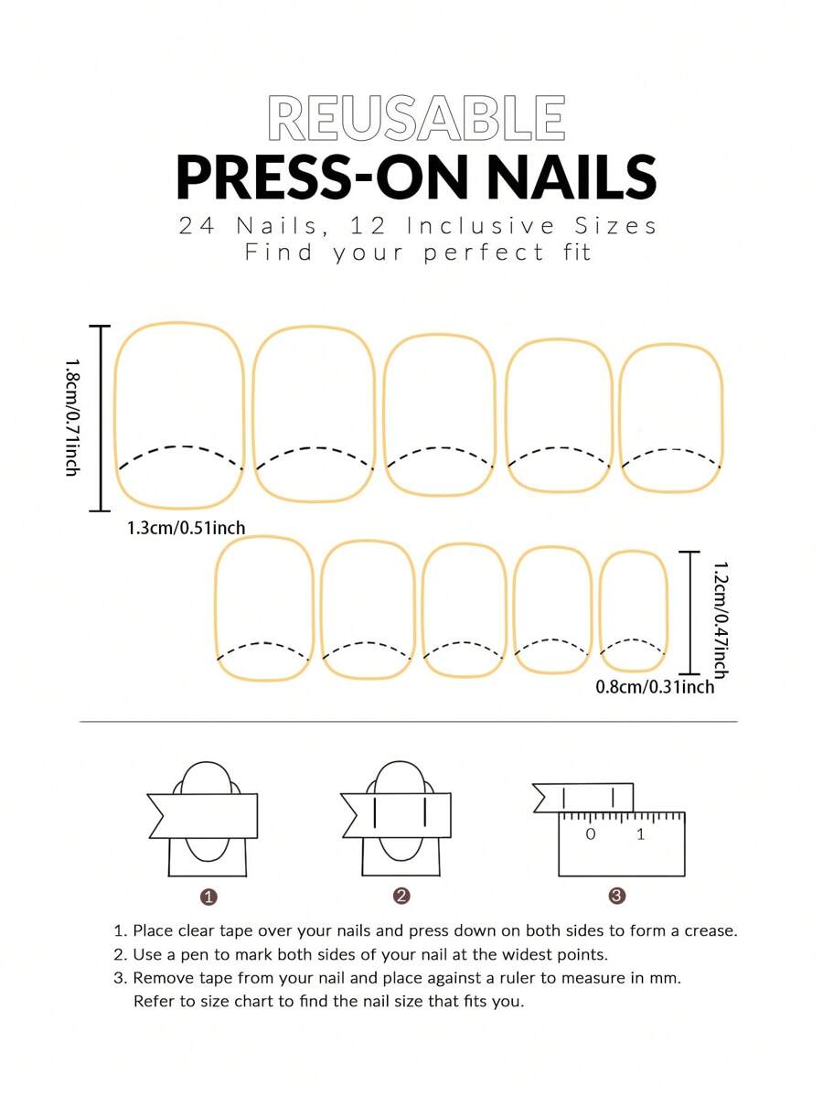 SHEIN طقم 24 أظافر صناعية قصيرة مطبوعة مينيمال