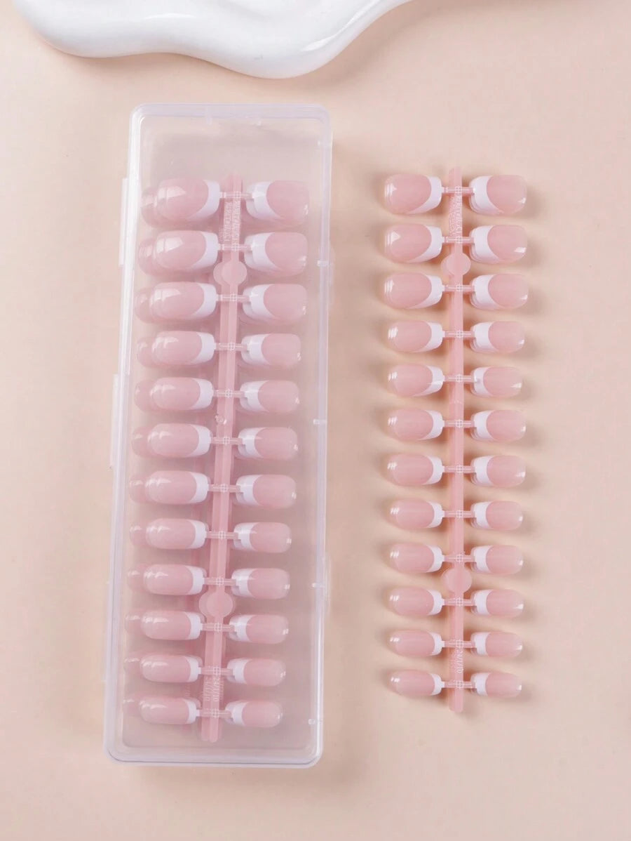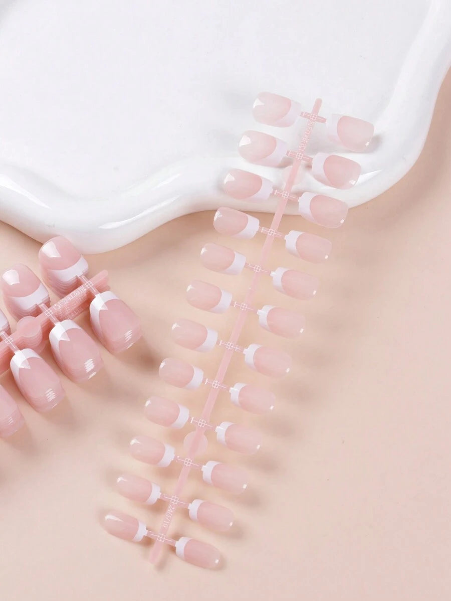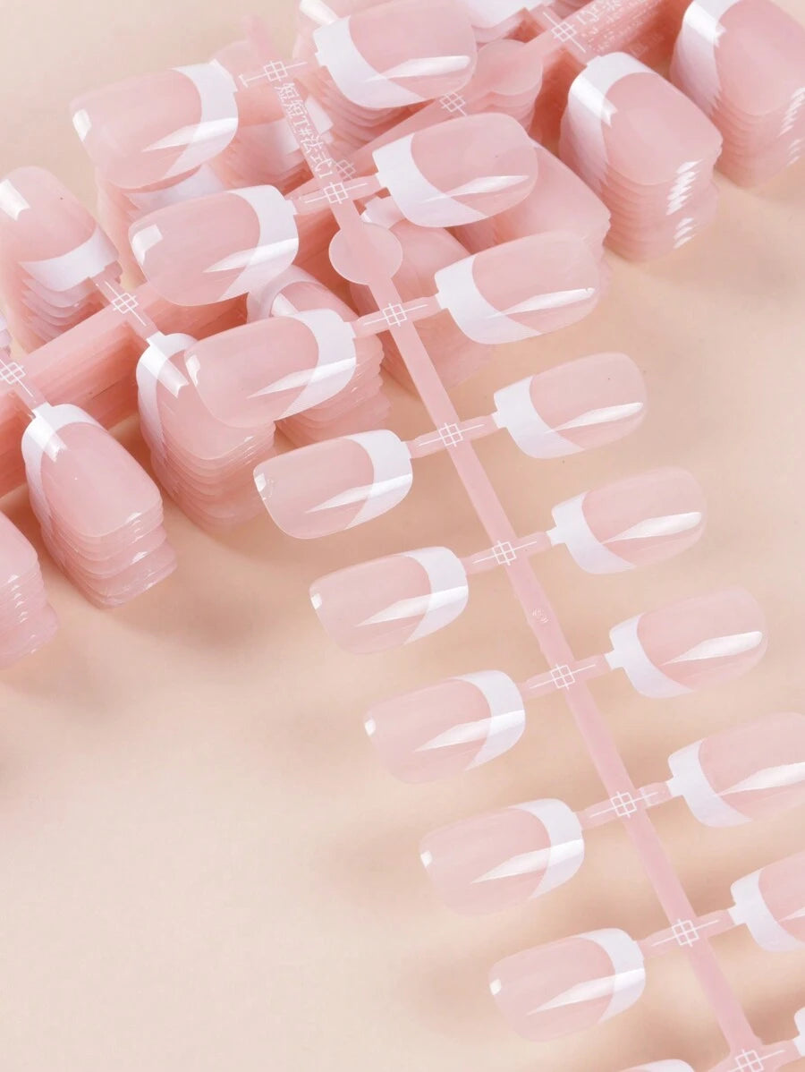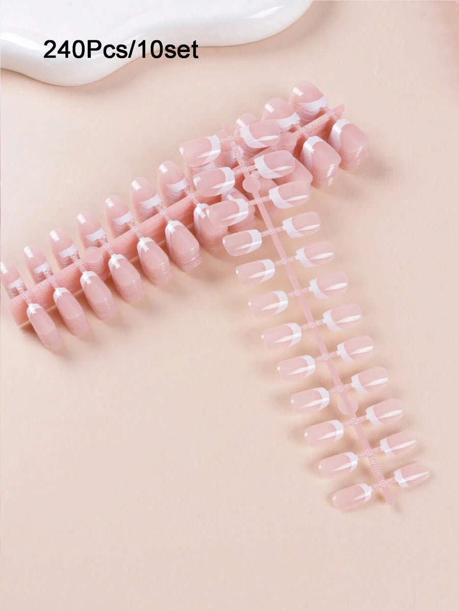 💅✨ SHEIN طقم 240 قطعة أظافر مستعارة قصيرة مربعة بطلاء فرنسي