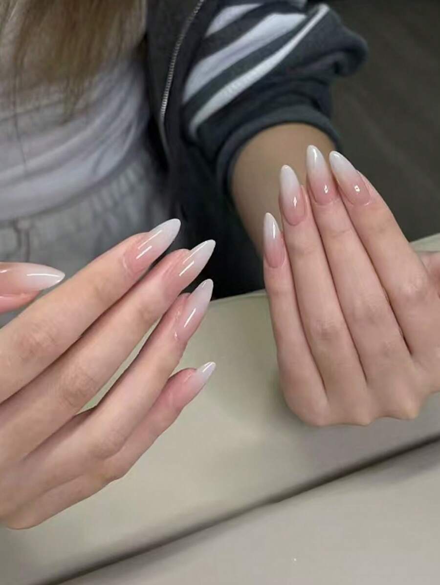 30 قطعة أظافر مزيفة بيضاء متدرجة طويلة مدببة، تشمل مبرد أظافر واحد وجيلي جل، مناسبة للاستخدام اليومي ومناسبات يوم الأم.