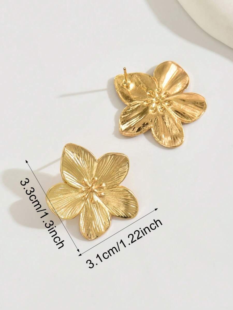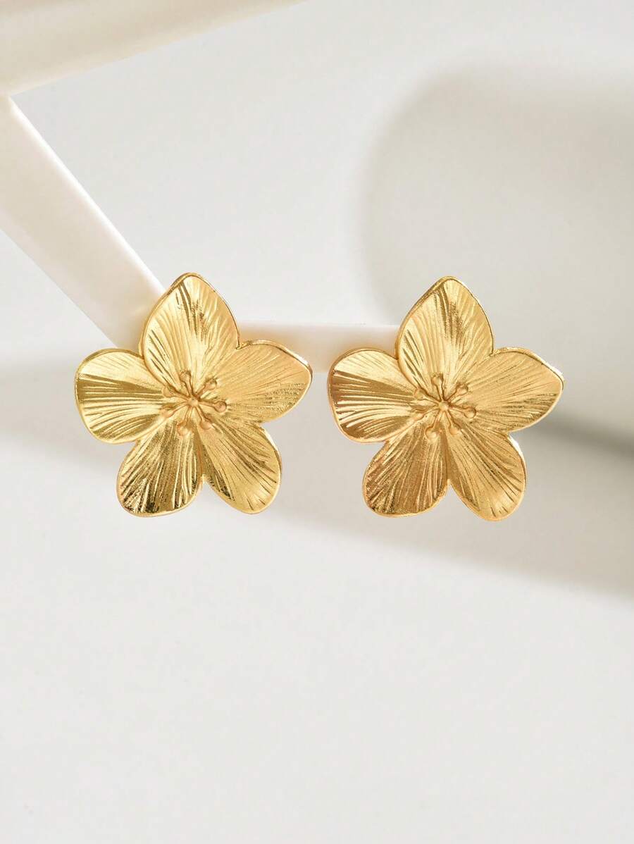 SHEIN زوج أقراط ذهبية بتصميم أزهار