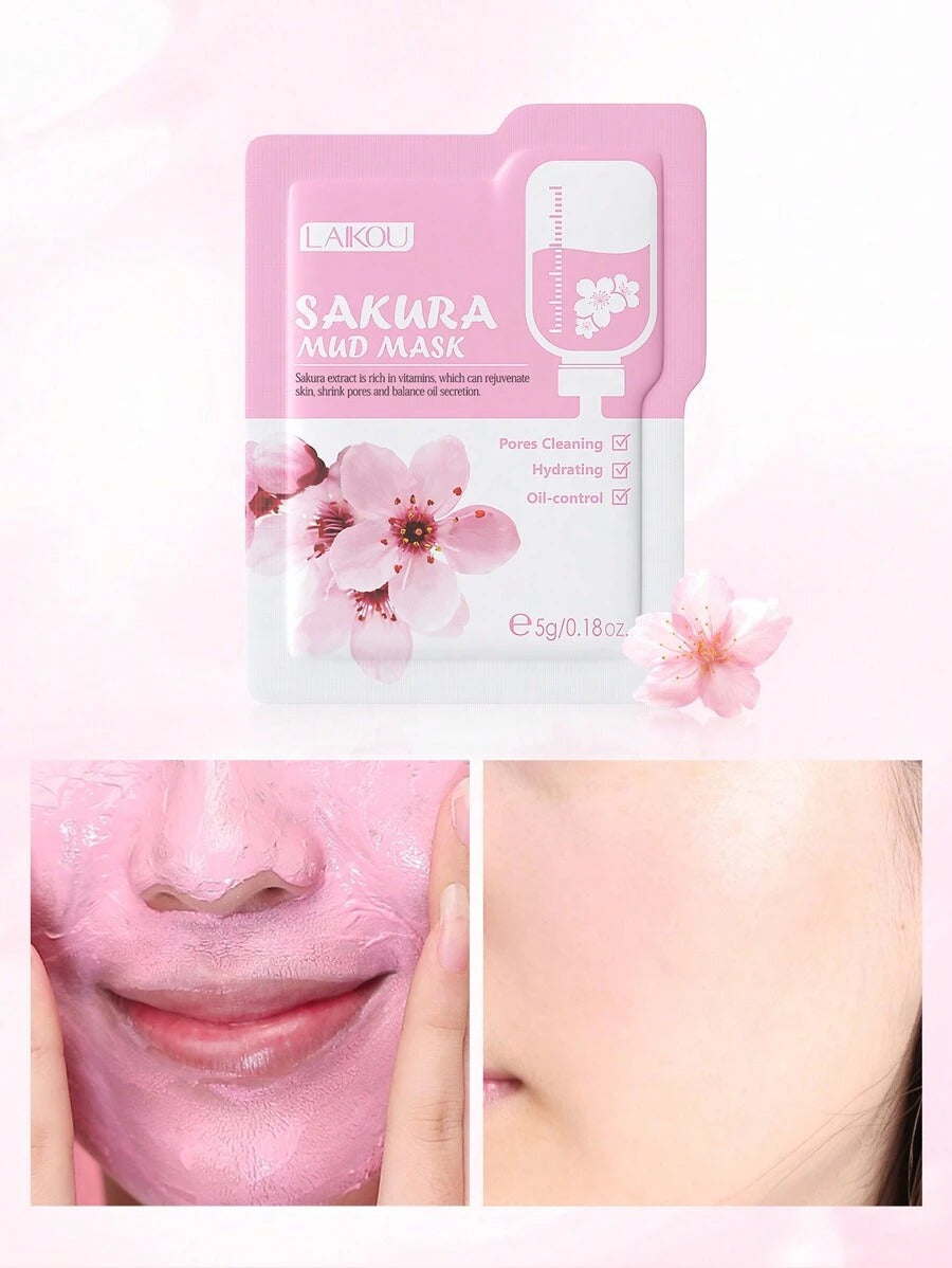 مجموعة كاملة للعناية بالبشرة بنكهة الكرز الياباني: أقنعة طين، غسول، منظف، سيروم، كريم أساس، ترطيب ومغذية عميقة، مثالية للسفر والأنشطة الخارجية 💖✨.