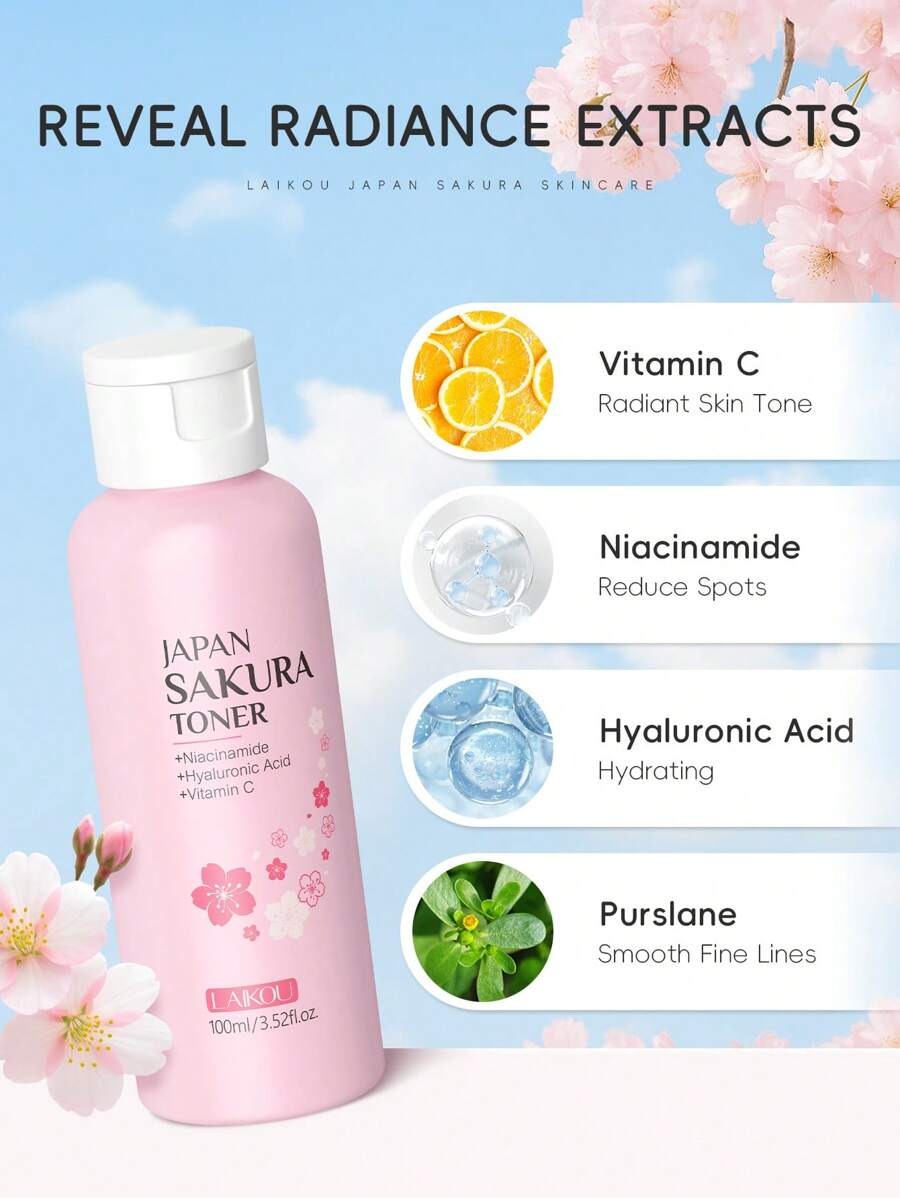 LAIKOU طقم هدايا عناية بالبشرة بالكرز الياباني 5 قطع