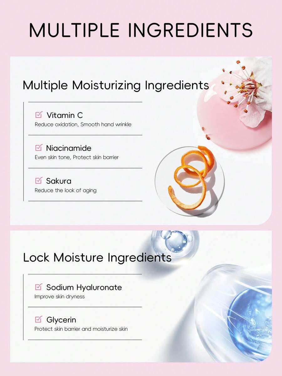 كريم يد ناعم وغني بالرطوبة بخلاصة الكرز الياباني، يساعد على ترطيب اليدين وتنعيمها ويقلل من مظهر التجاعيد. يعطي إحساس ناعم ورائحة منعشة تدوم، مناسب للسفر والأنشطة الخارجية.