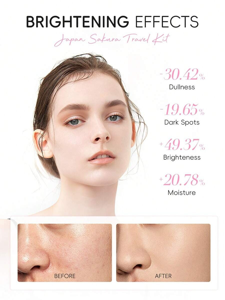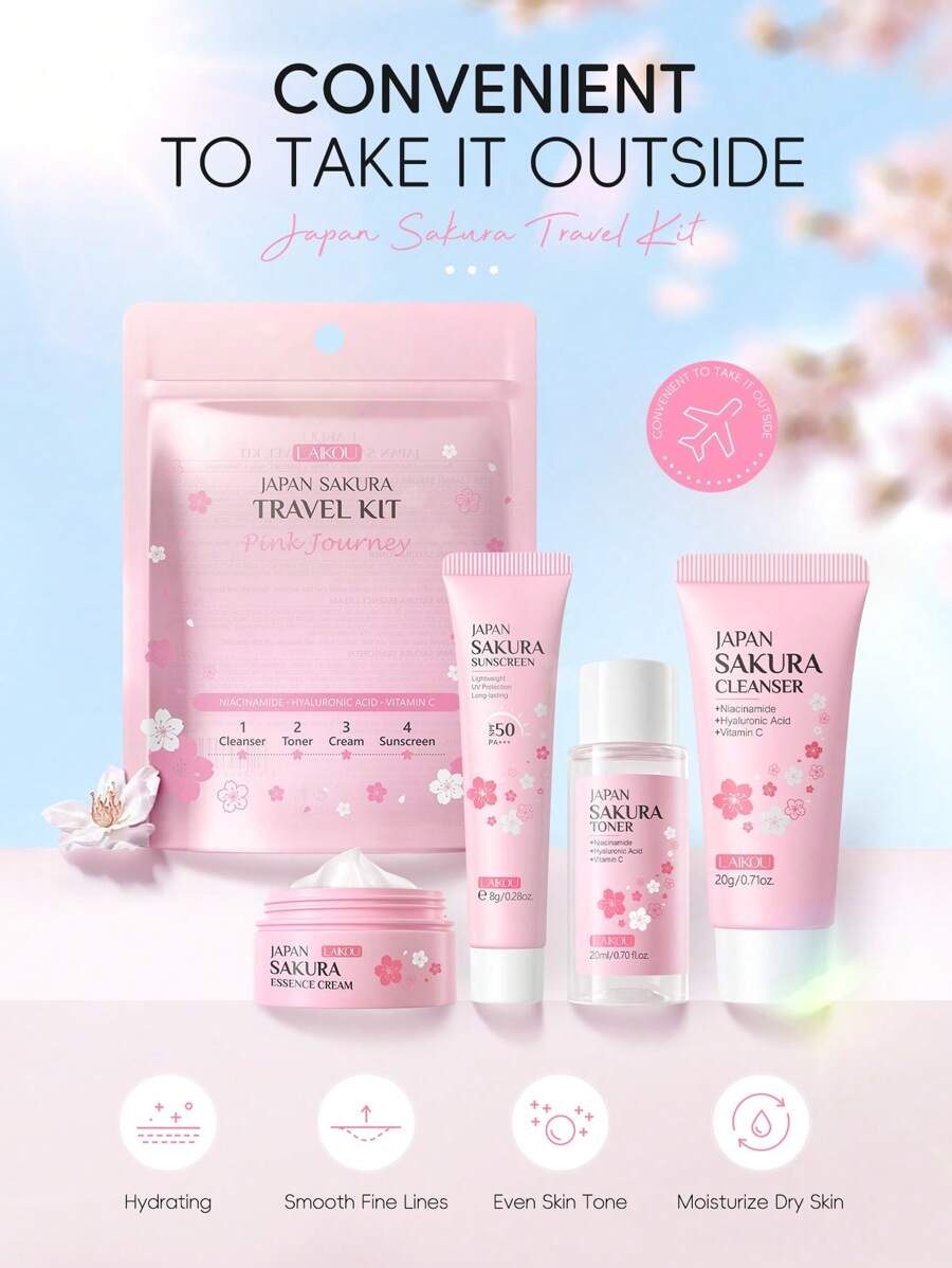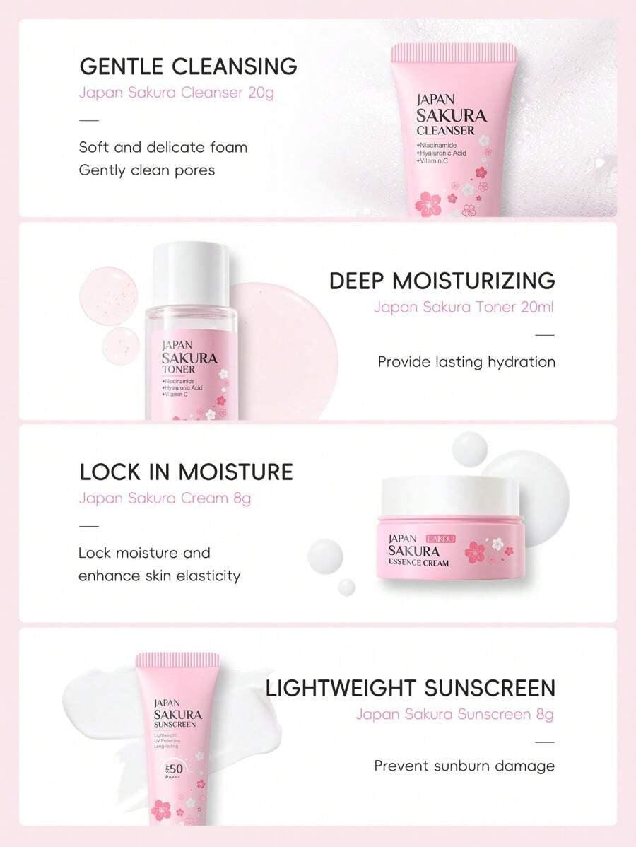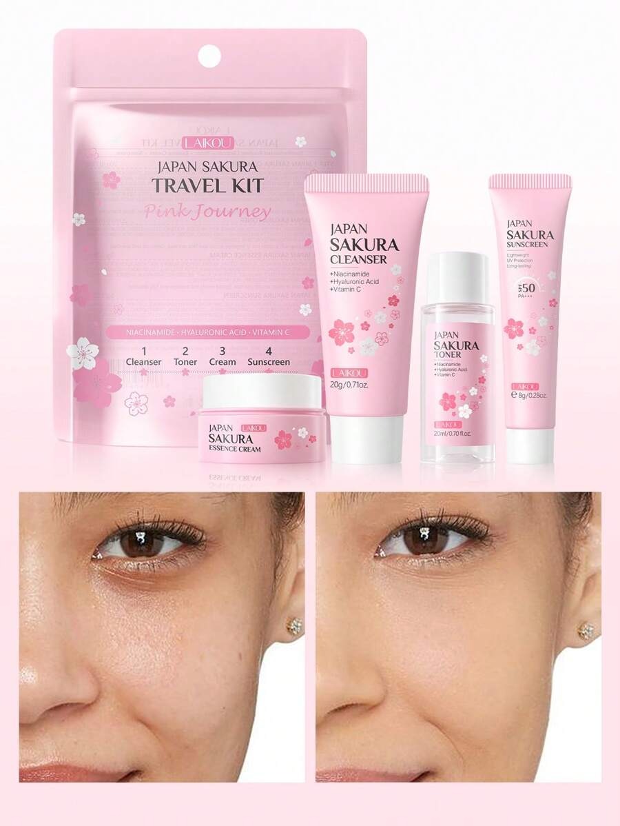 LAIKOU مجموعة عناية بالبشرة 4 قطع بزهر الكرز تشمل واقي شمس وكريم ومنظف