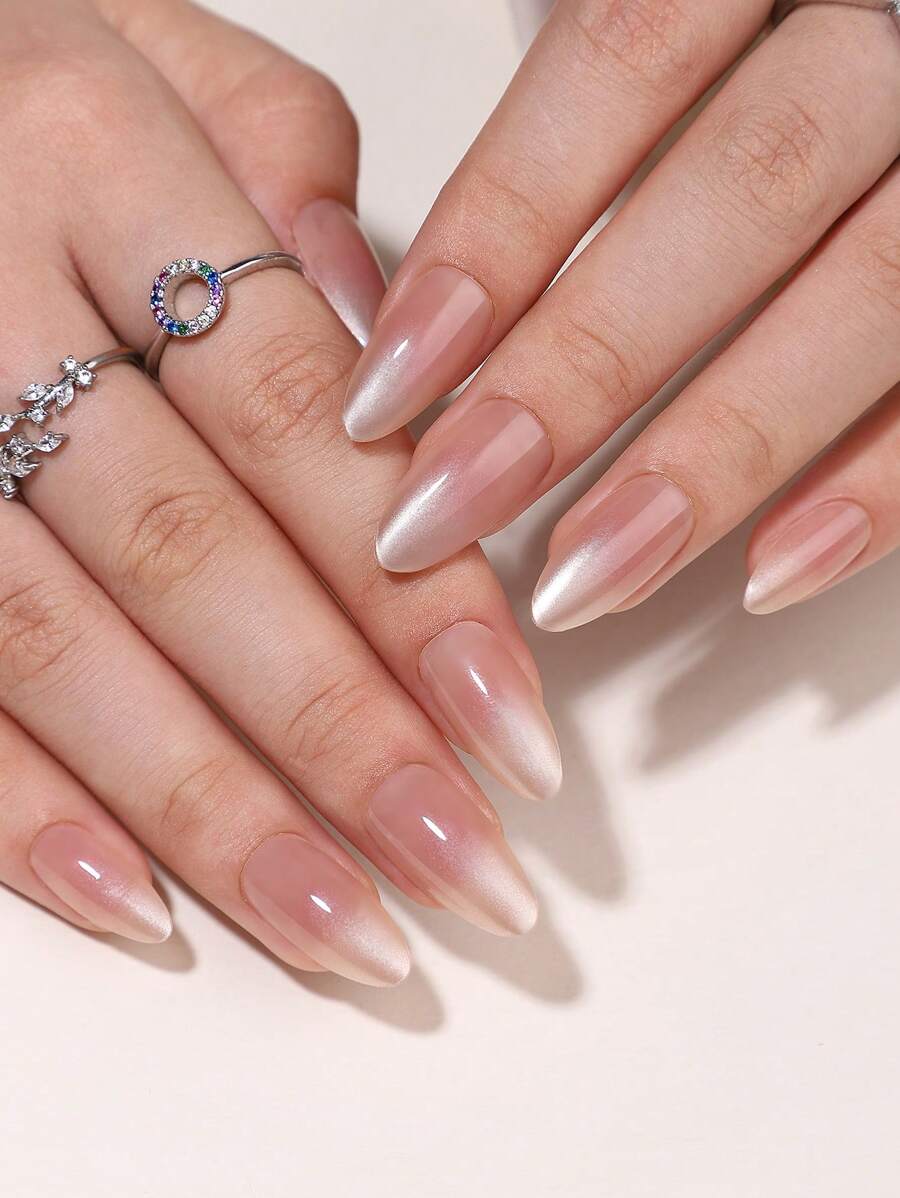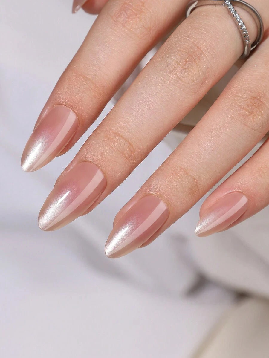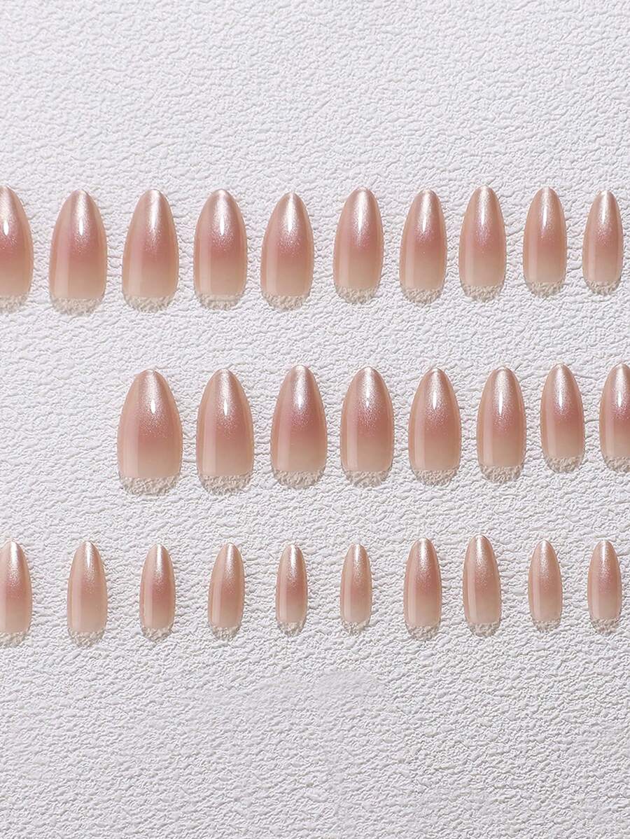 SHEIN طقم أظافر 30 قطعة ضغط لوزية طويلة بيج ووردي فاتح مع جل