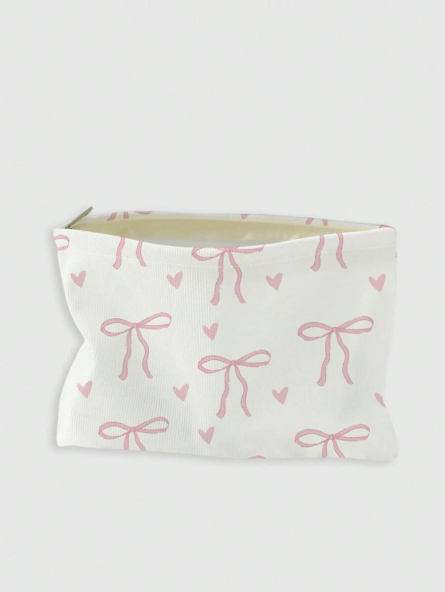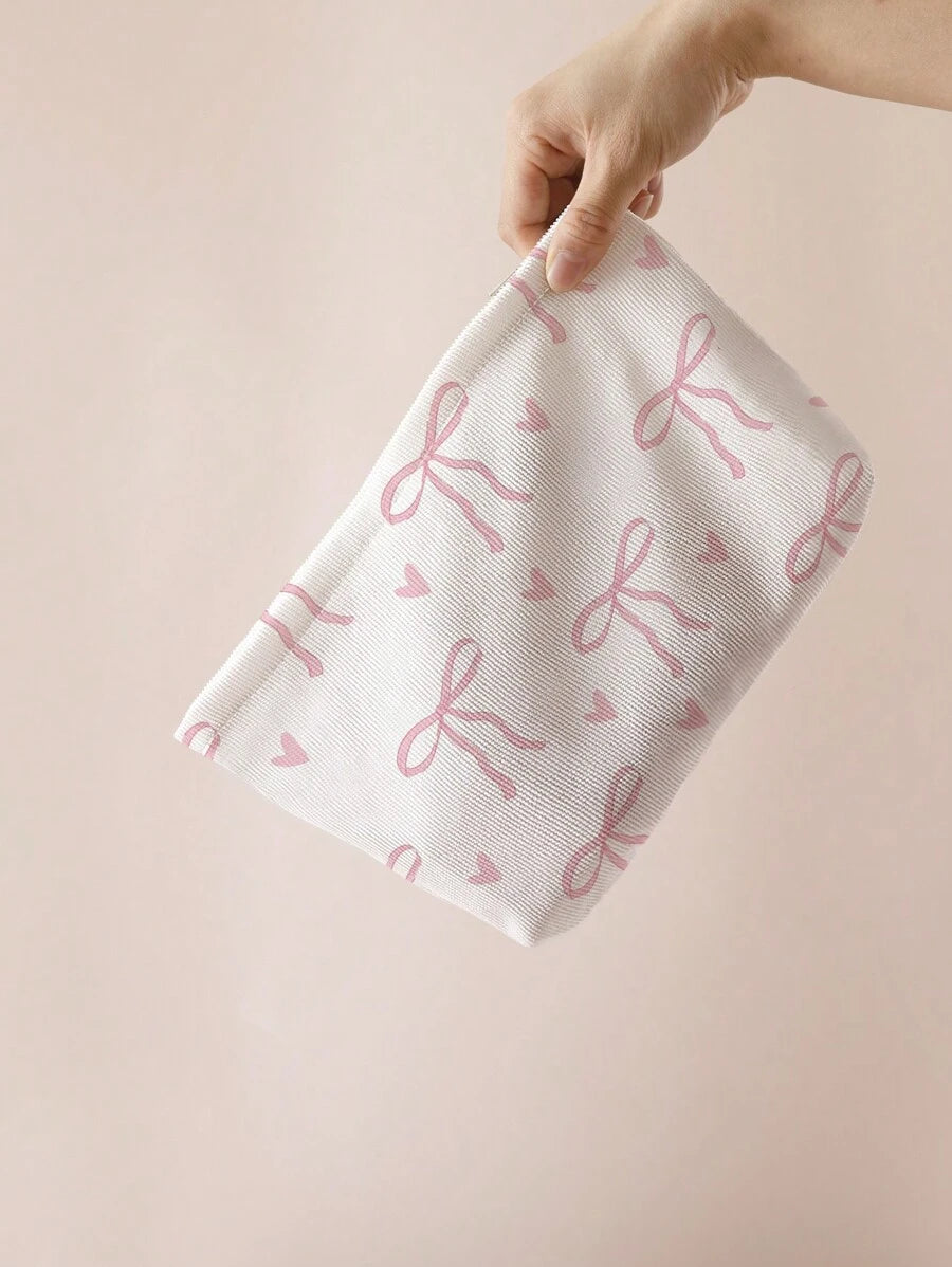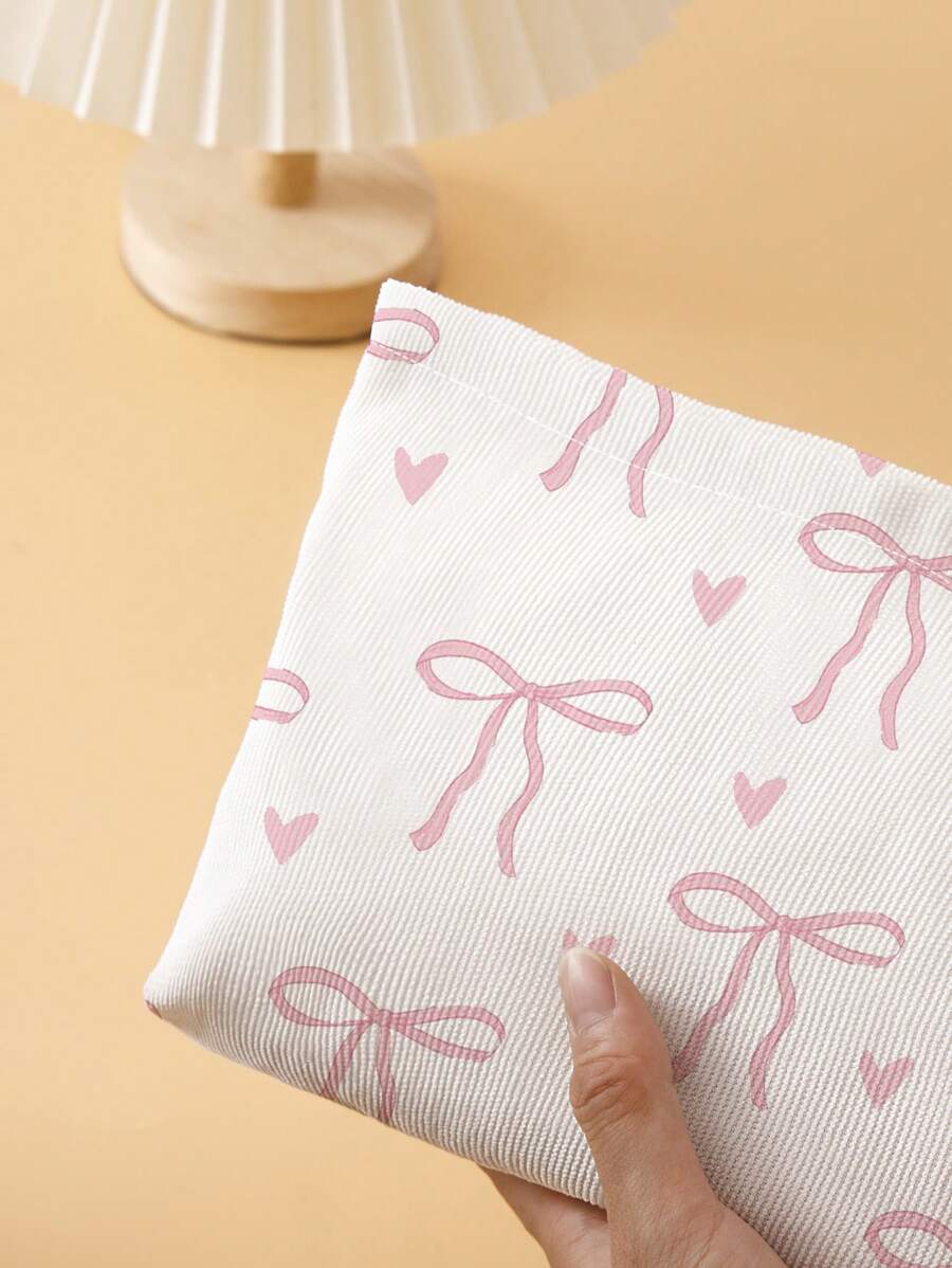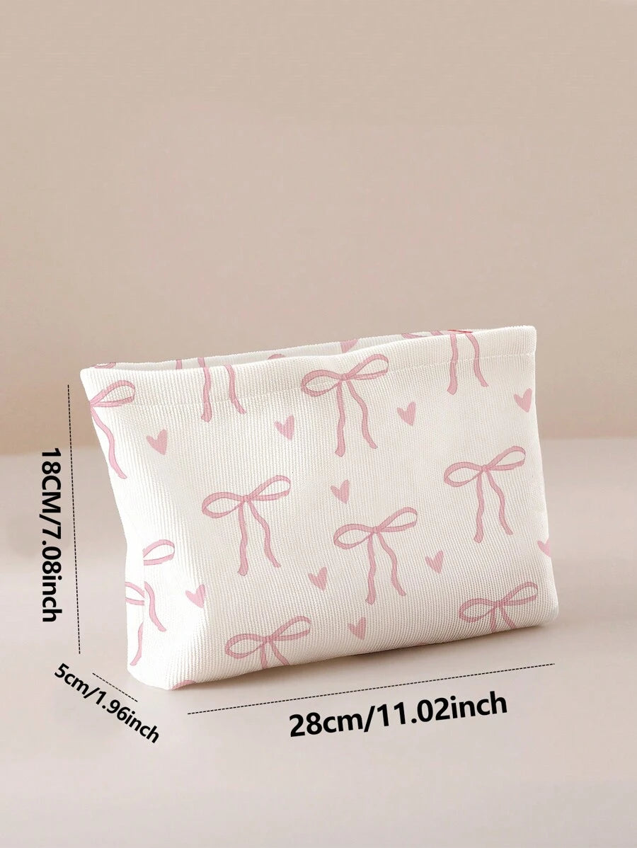 🎀 حقيبة تجميل كوردروي بطباعة لطيفة وعقدة مزدوجة 💕
