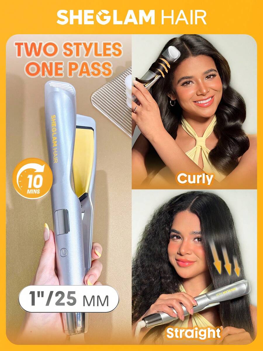 مكواة شعر SHEGLAM 2 في 1 – فرد وتجعيد بالأيونات السالبة 💛