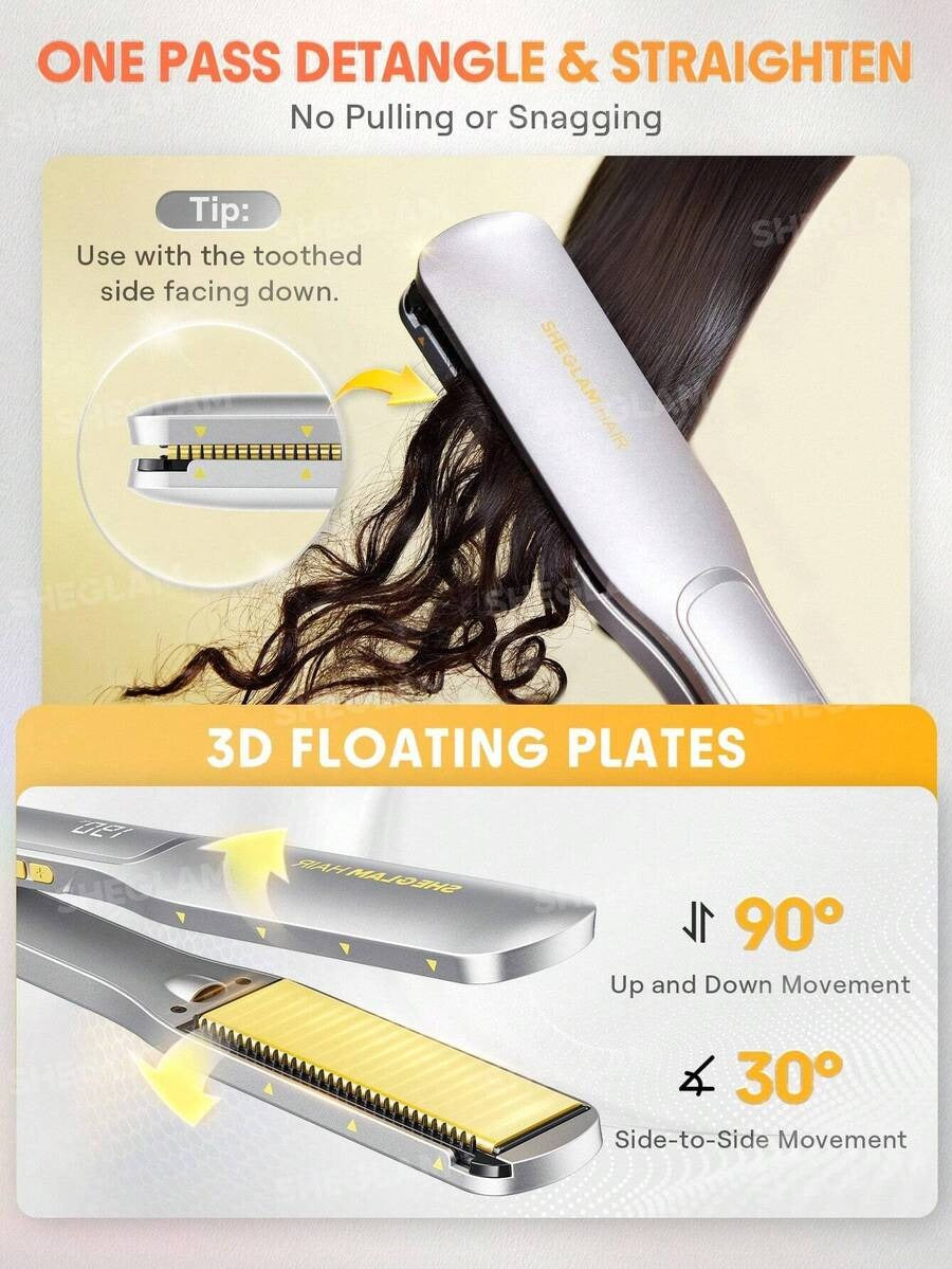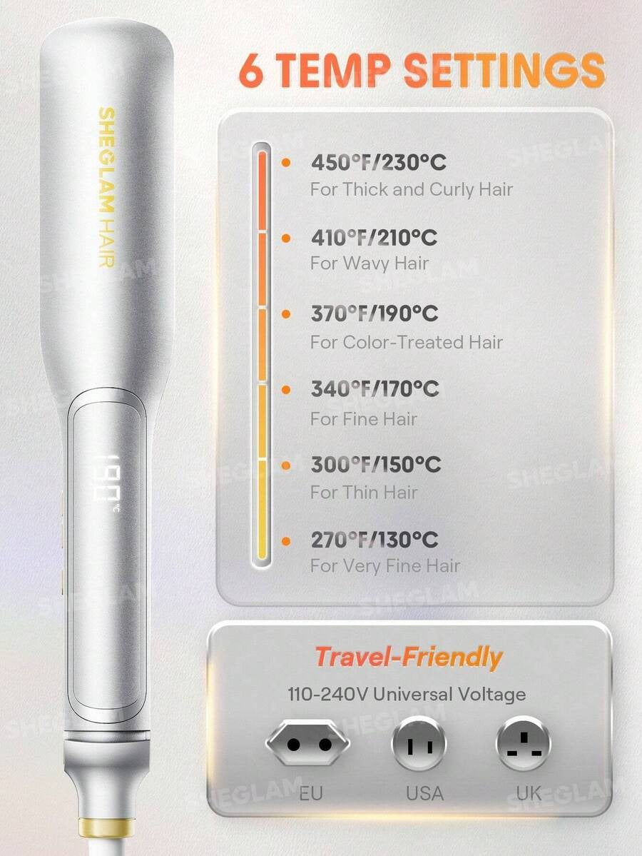 SHEGLAM مكواة شعر عريضة مثالية لفرد الشعر بسرعة وفعالية