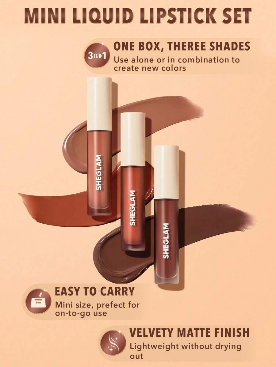SHEGLAM Nude Beach مجموعة 3 قطع روج سائل