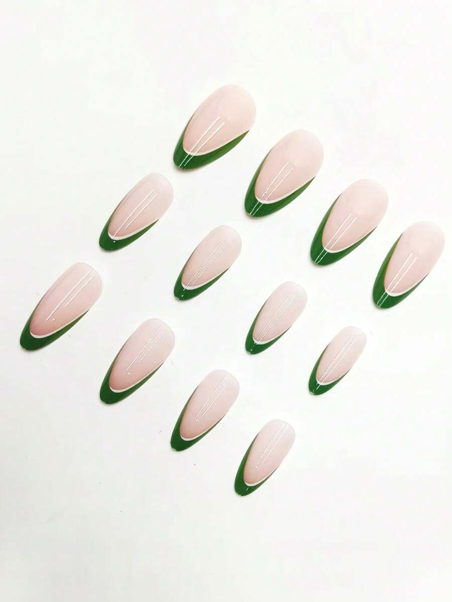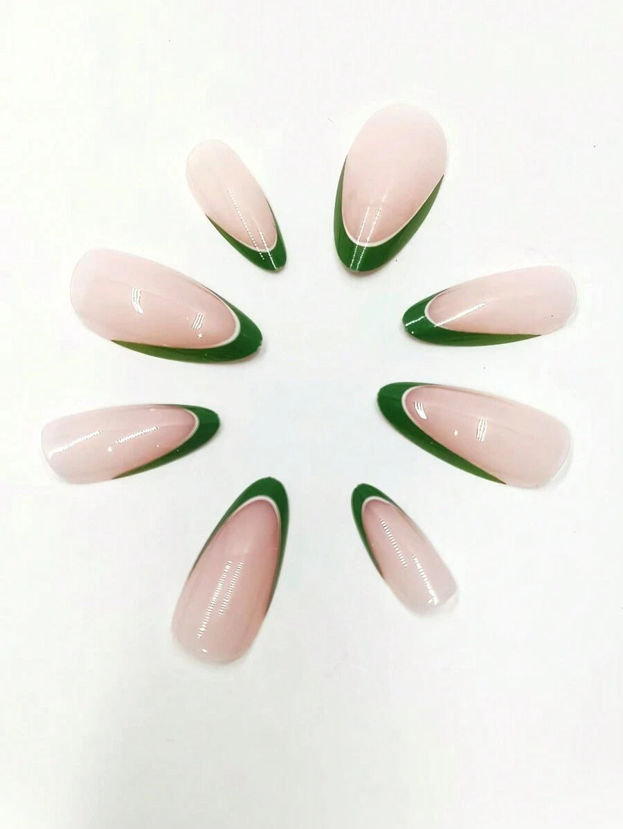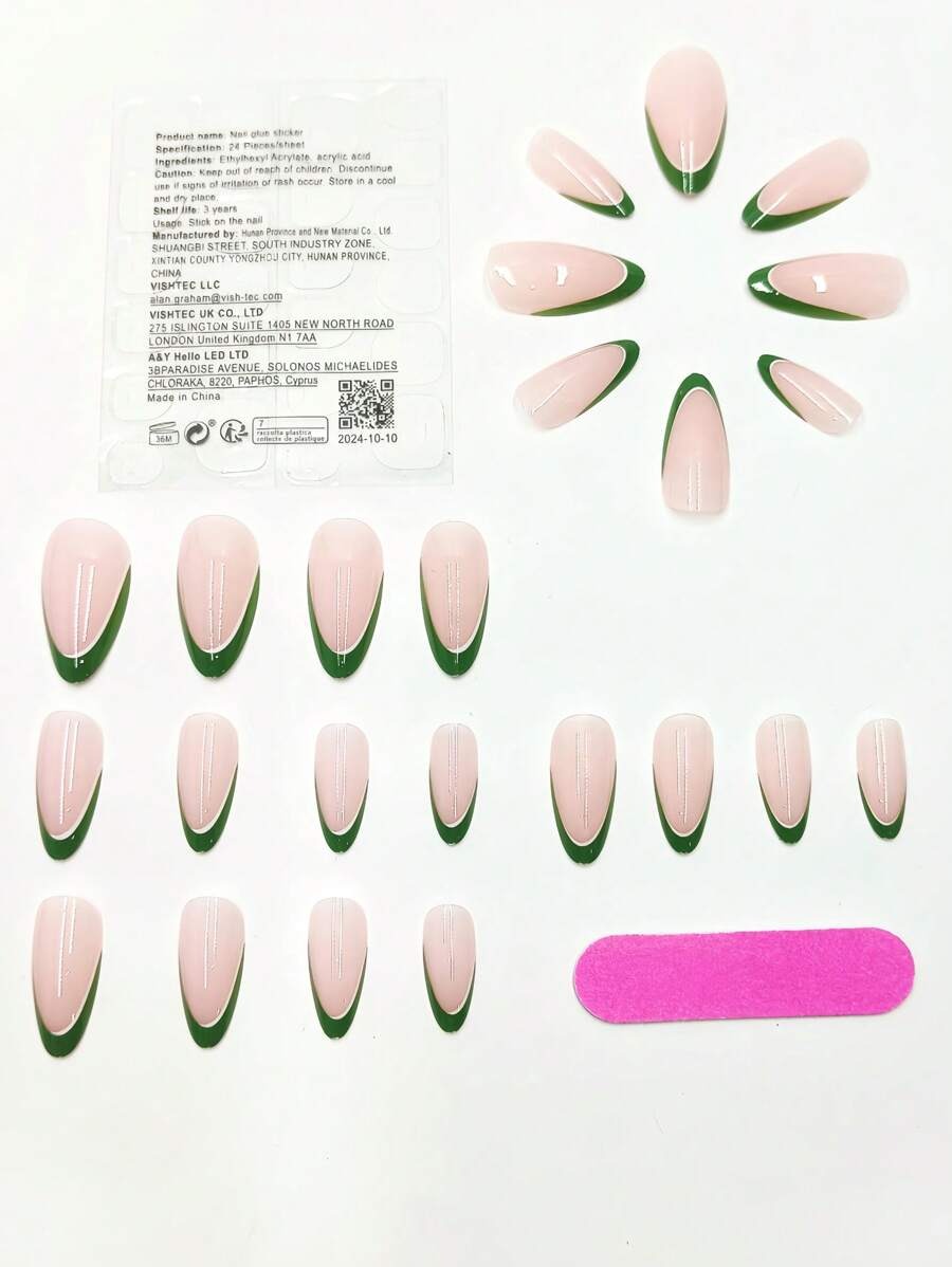 SHEIN طقم أظافر صناعية 24 قطعة لوزي أخضر وردي مع جل ومبرد
