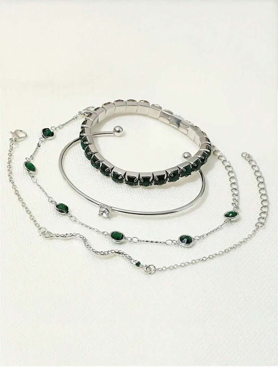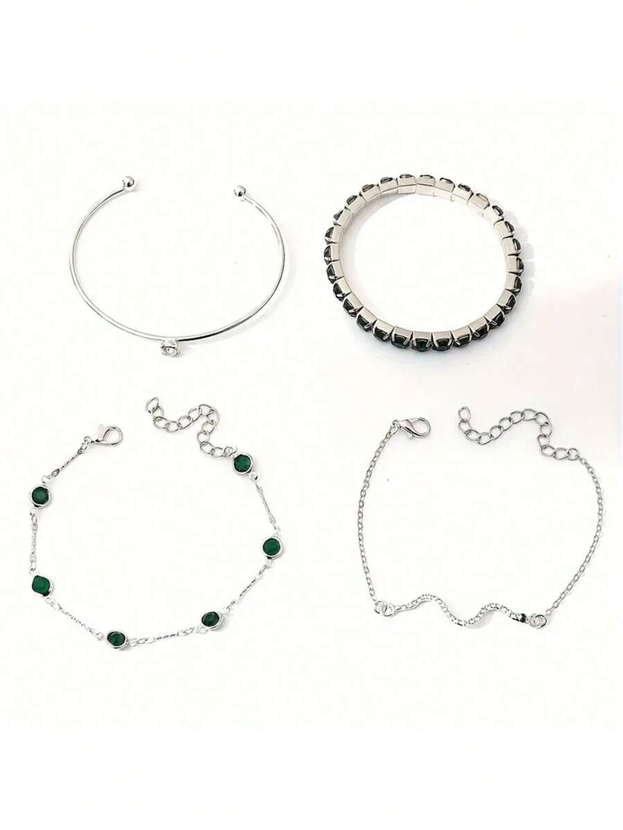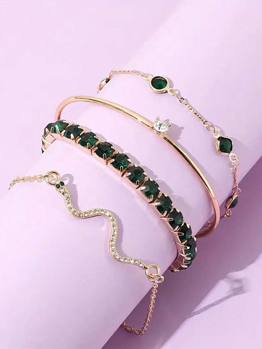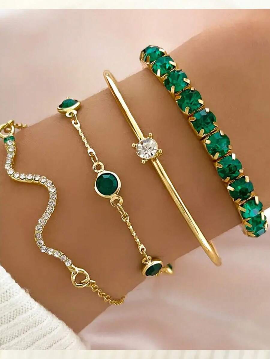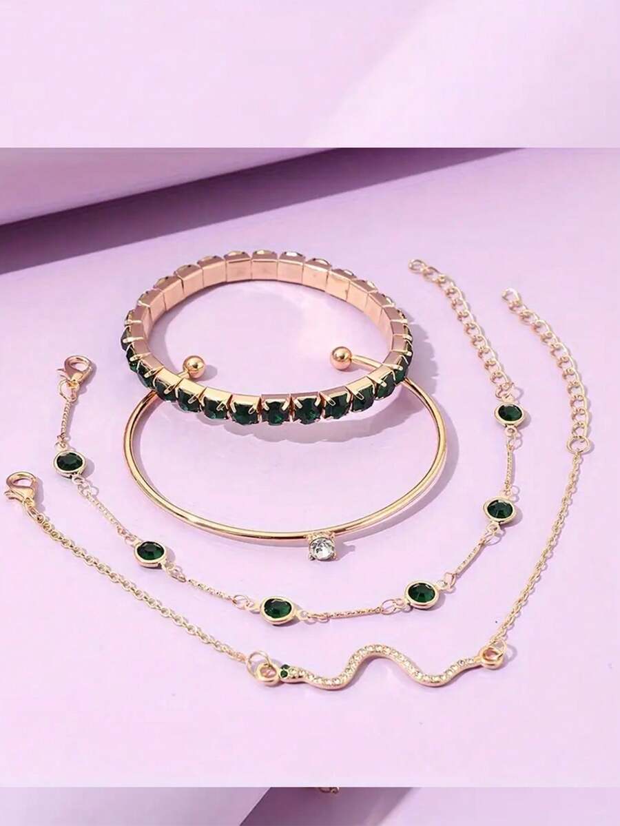 SHEIN أساور 4 قطع بكريستال أخضر بشكل ثعبان