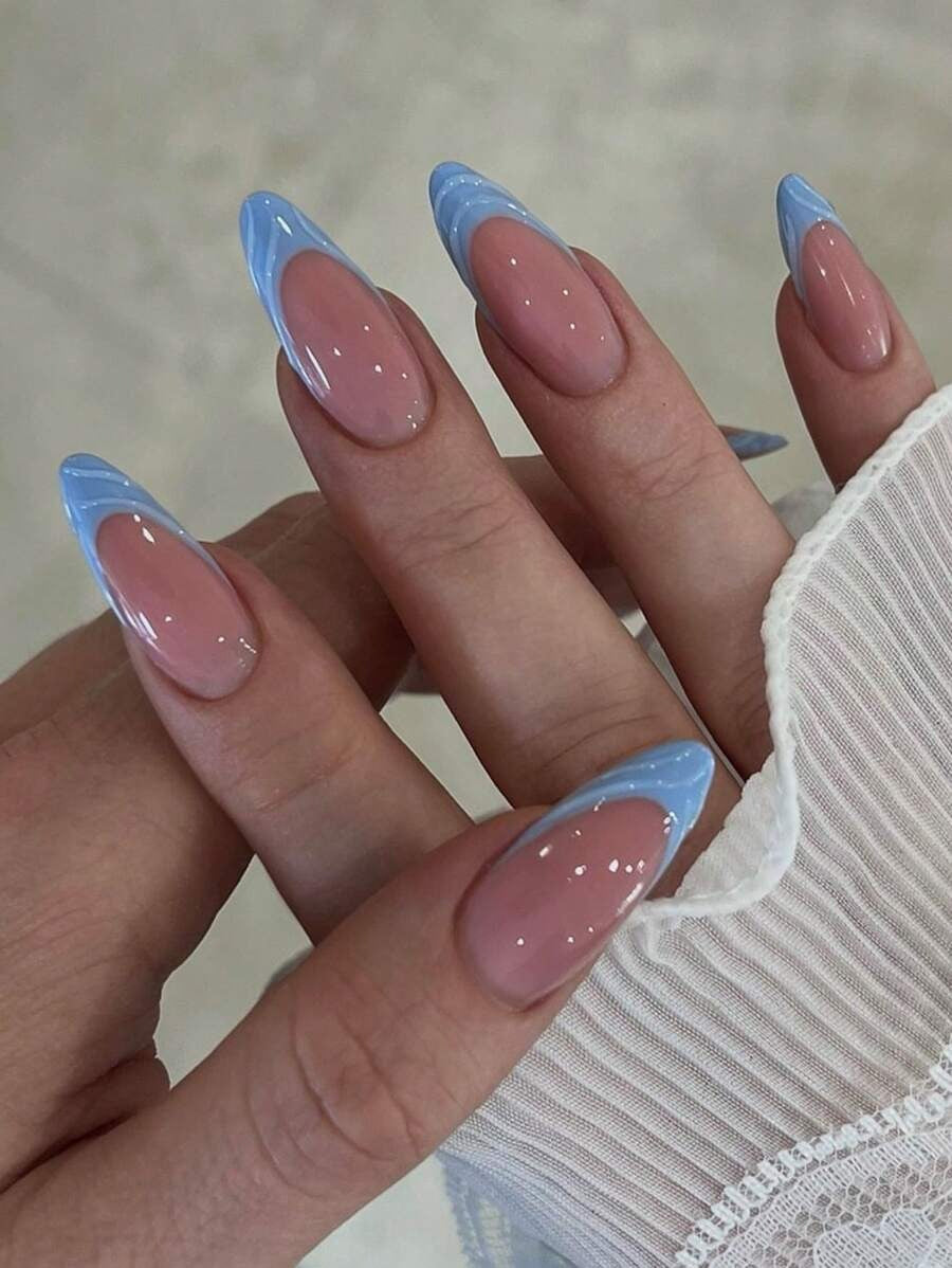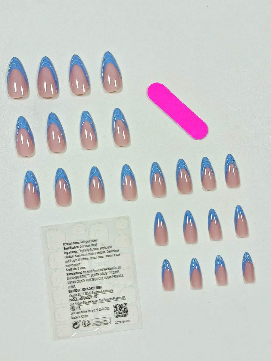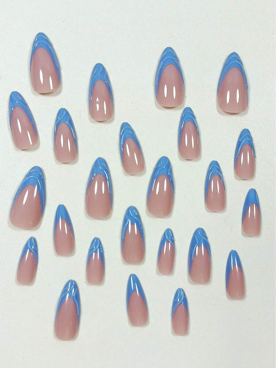 SHEIN مجموعة أظافر 24 قطعة قصيرة شكل لوز باللون الازرق