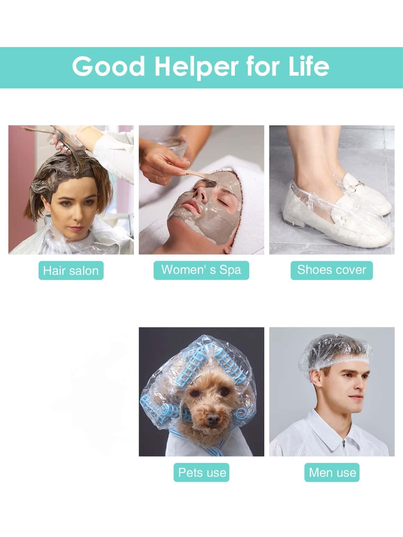 أغطية رأس خفيفة ومقاومة للغبار، مناسبة للاستعمال في الصالون، المطبخ، صبغ الشعر أو الاستحمام. تجي بعدد قطع 50، 100، 150، 200 أو 300، تصميم عملي وسهل الاستخدام، تنفع للسفر وللكل المناسبات.