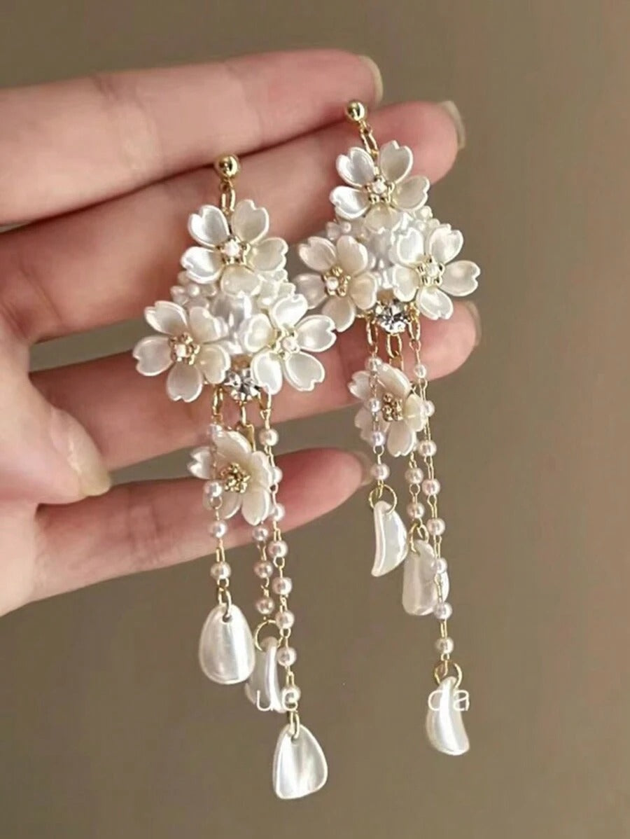 SHEIN أقراط حلقة طويلة مزينة بكاميليا وقطرة لؤلؤ
