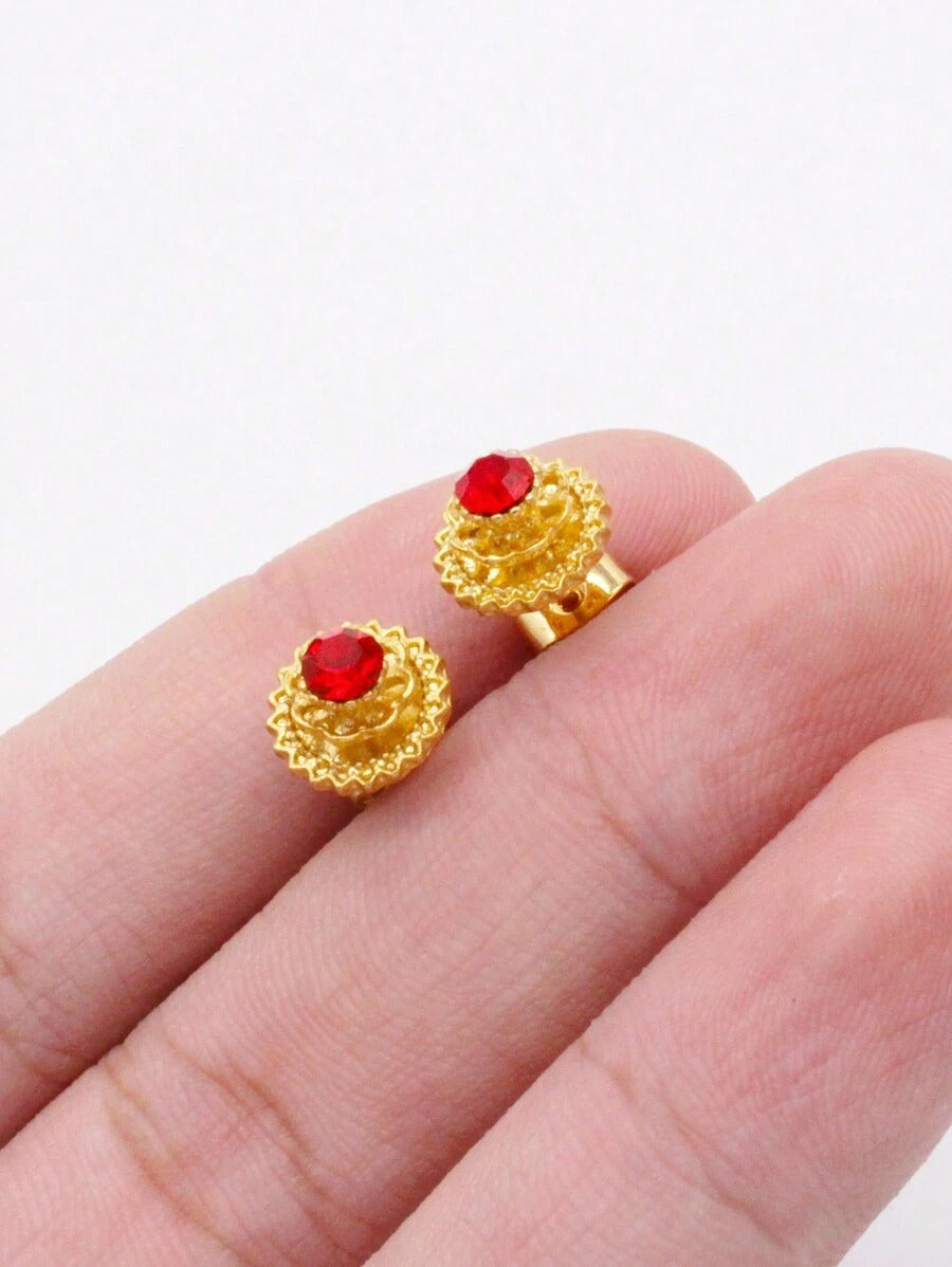 أقراط ناعمة وصغيرة بحلقة دائرية، مطلية بالذهب بتصميم أنيق مستوحى من الستايل الأفريقي. خفيفة على الأذن وتزيد من لمسة الجمال لأي طلة. مثالية كهدية فخمة أو للاستخدام اليومي.