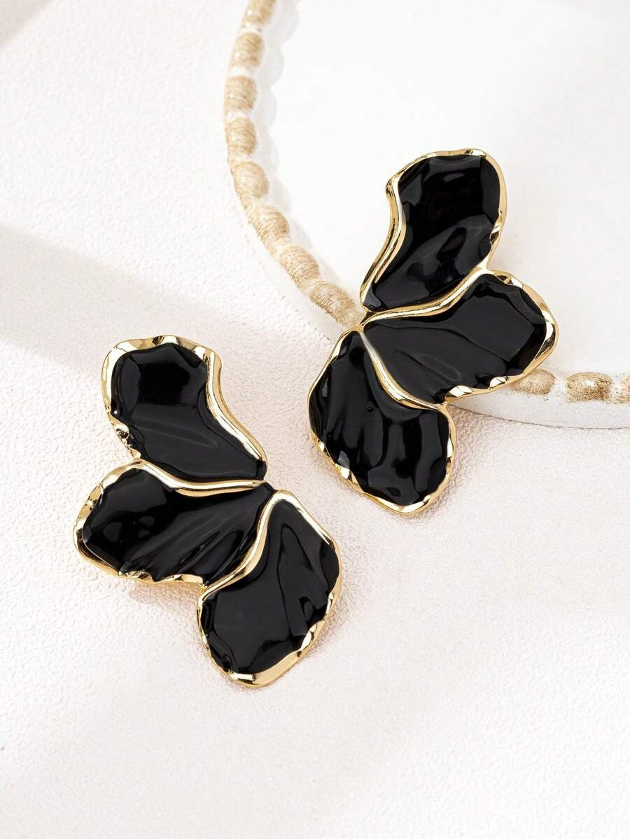 SHEIN أقراط معدنية مطلية بالميناء بزخرفة زهرية