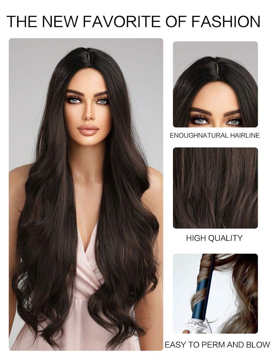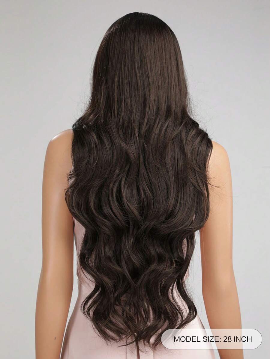 باروكة صناعية طويلة بطول 28 بوصة، بتصفيفة وسط طويلة ومموجة (بودي ويف)، مصممة من ألياف عالية الجودة مقاومة للحرارة حتى 150°، تمنحك مظهرًا طبيعيًا وواقعيًا
