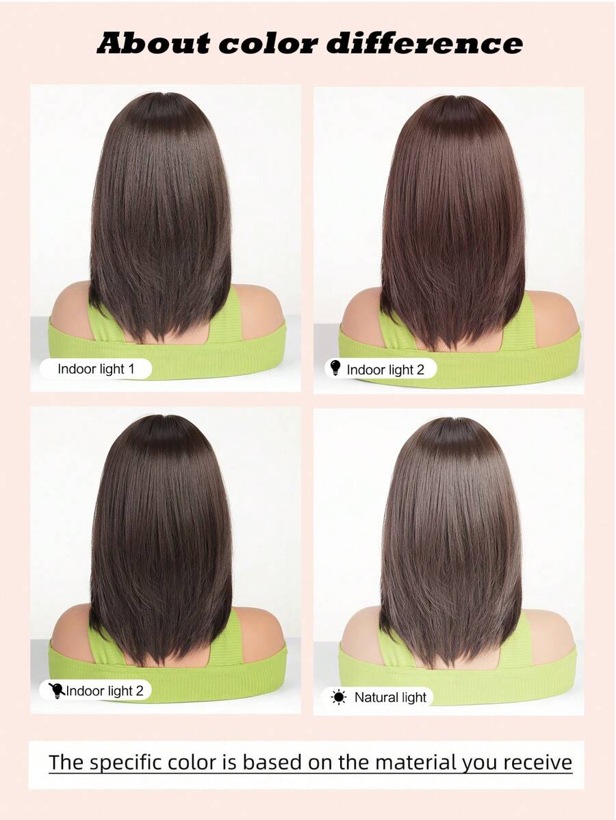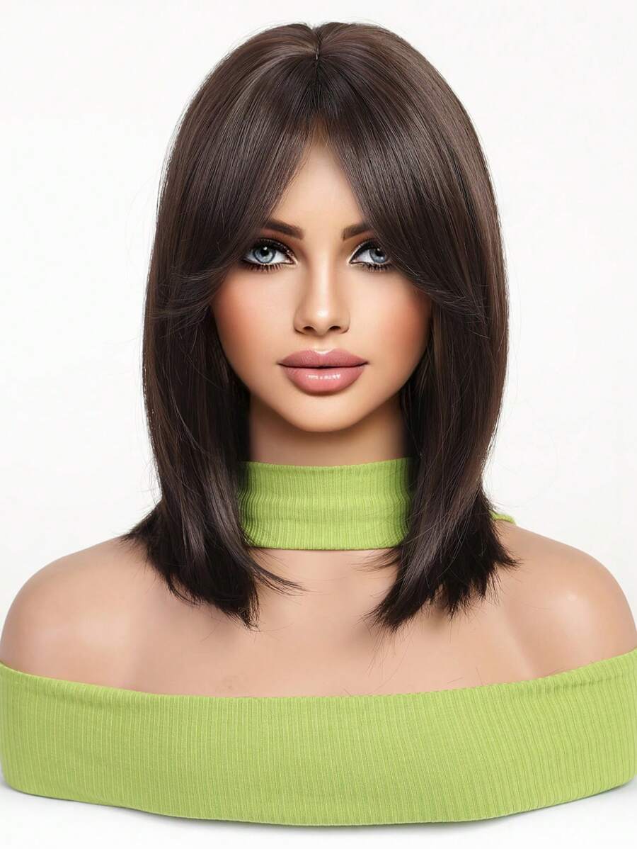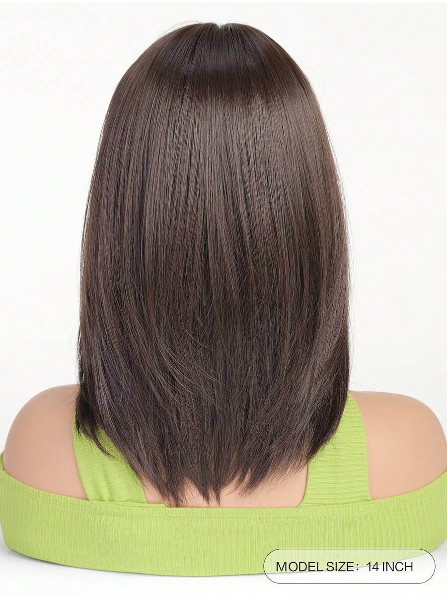 💇♀️✨ باروكة شعر شبه قصيرة مستقيم – بني داكن للسيدات 🌰