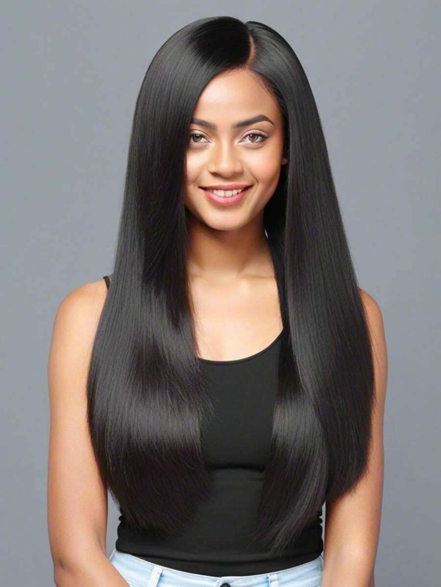 باروكة شعر أسود مستقيم بطول 28 بوصة – طراز أنيق وكثافة عالية 💇♀️🖤