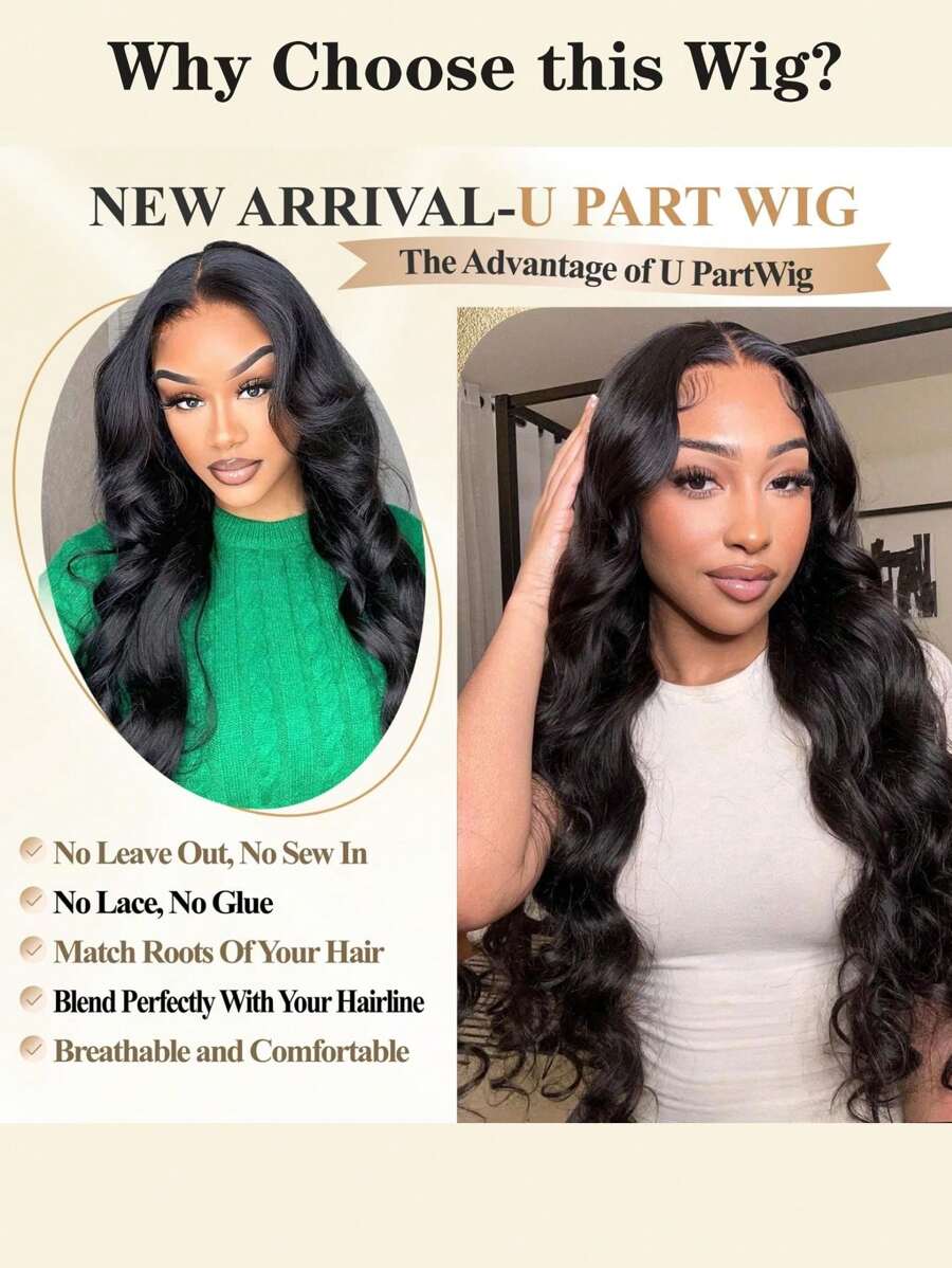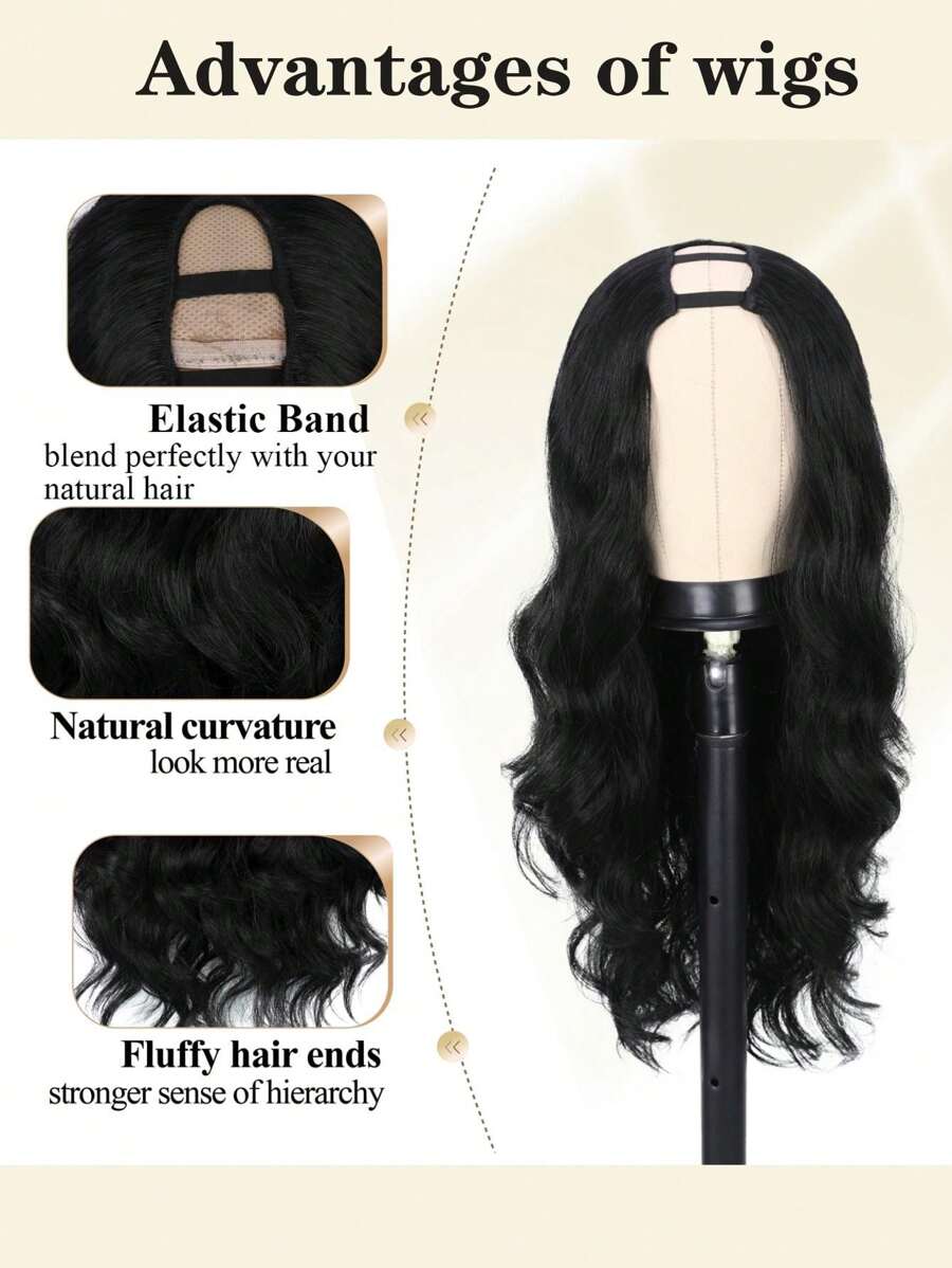 باروكة شعر مستعار جزئي من نوع يكي مع موجات جسدية، مصممة للشعر الأسود بستايل بودي ويف، مقاومة للحرارة حتى 150°