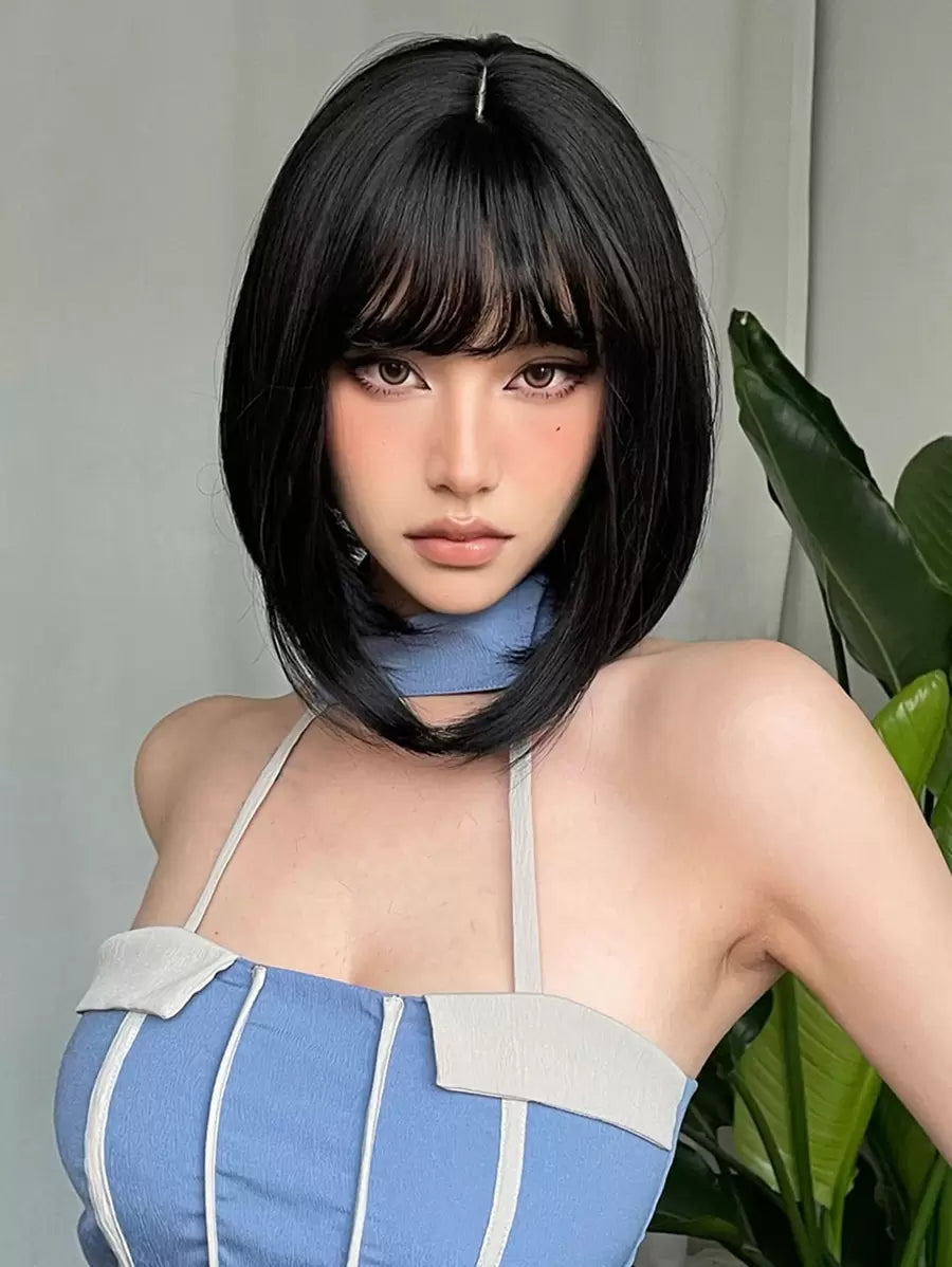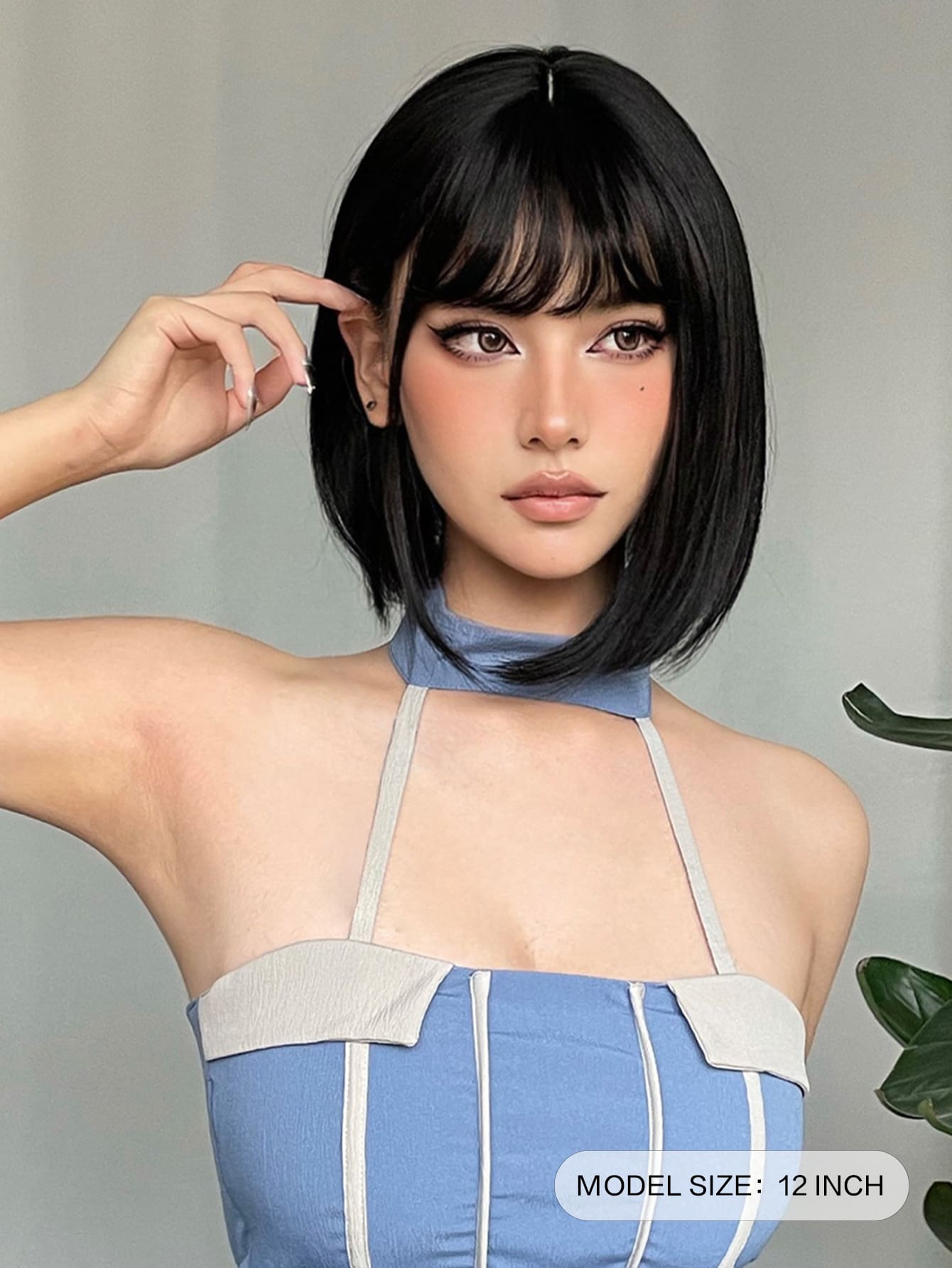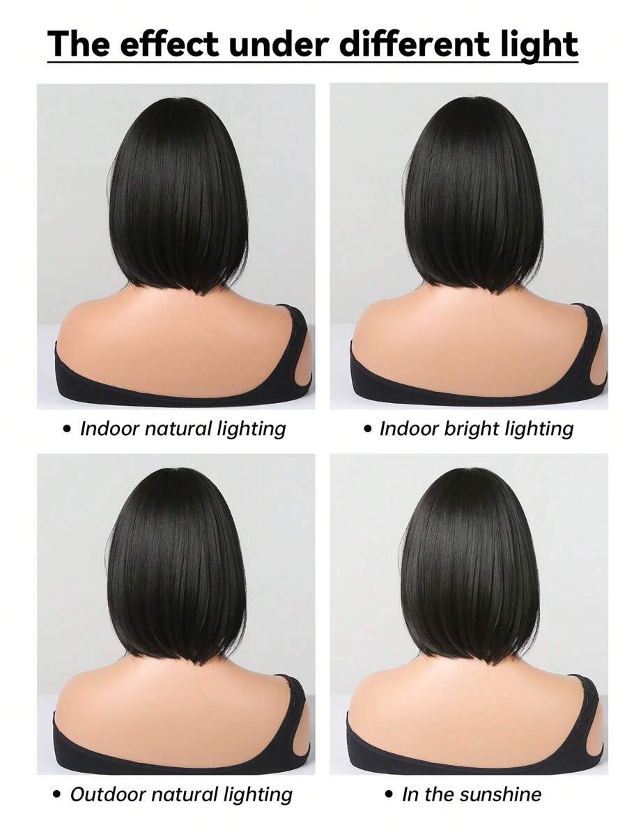 SHEIN باروكة شعر صناعي بوب قصير أسود