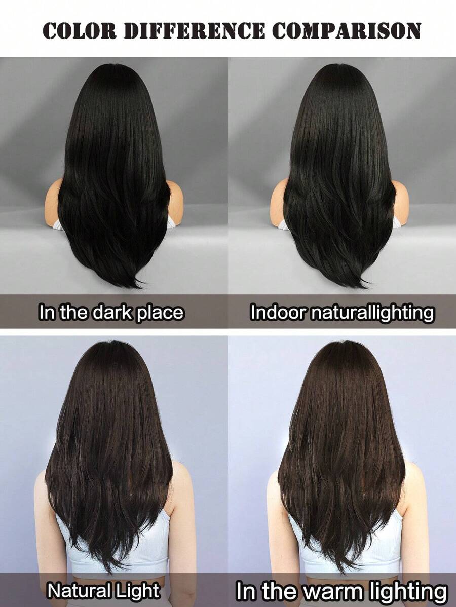 SHEIN باروكة شعر صناعي طويل 24 بوصة بني داكن مموج مع غرة