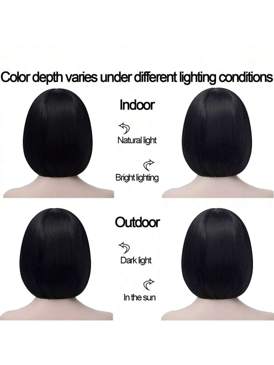 SHEIN باروكة شعر قصيرة سوداء بشعبان