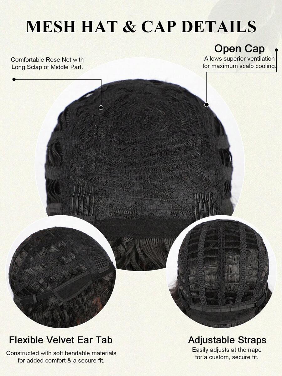 باروكة شعر اصطناعي 12 بوصة مجعد للنساء، بطول متوسط وفوضوي مع نمط قصة الشفايف، مقاومة للحرارة