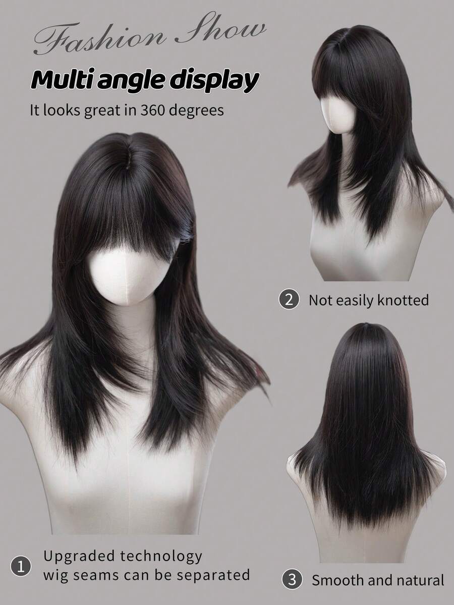 SHEIN باروكة شعر مستعار أسود طويل مستقيم 20 بوصة مع غرة