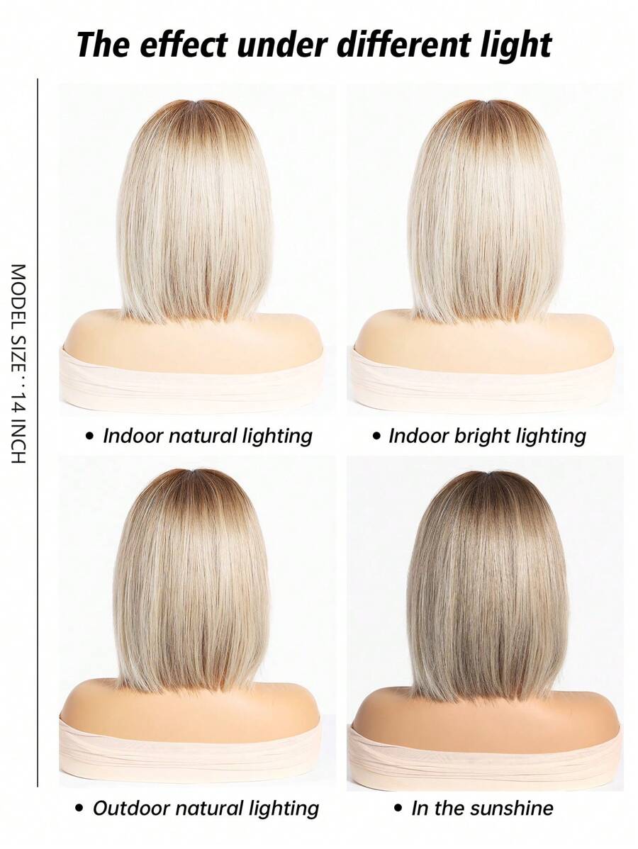SHEIN باروكة شعر 14 بوصة بلون أوبر من البني و الأسود الأشقر مقاومة للحرارة