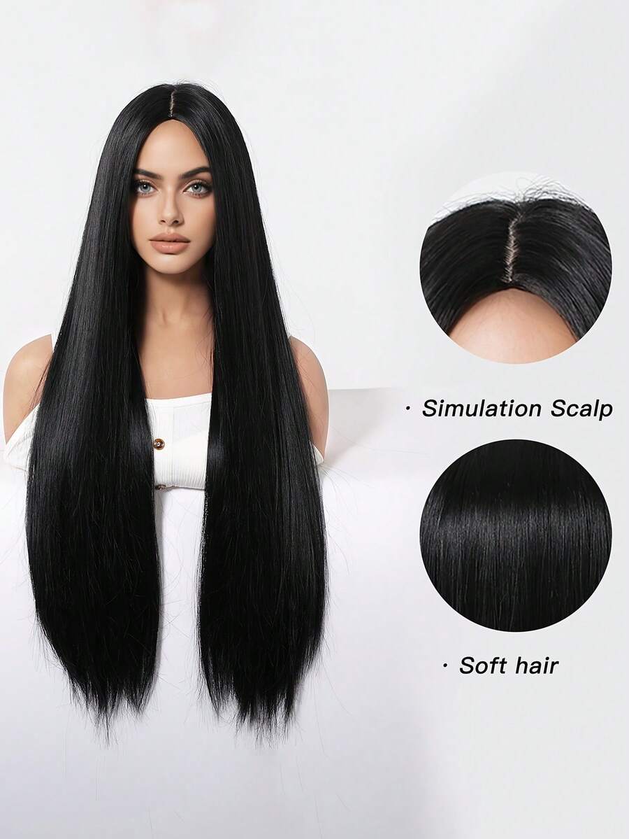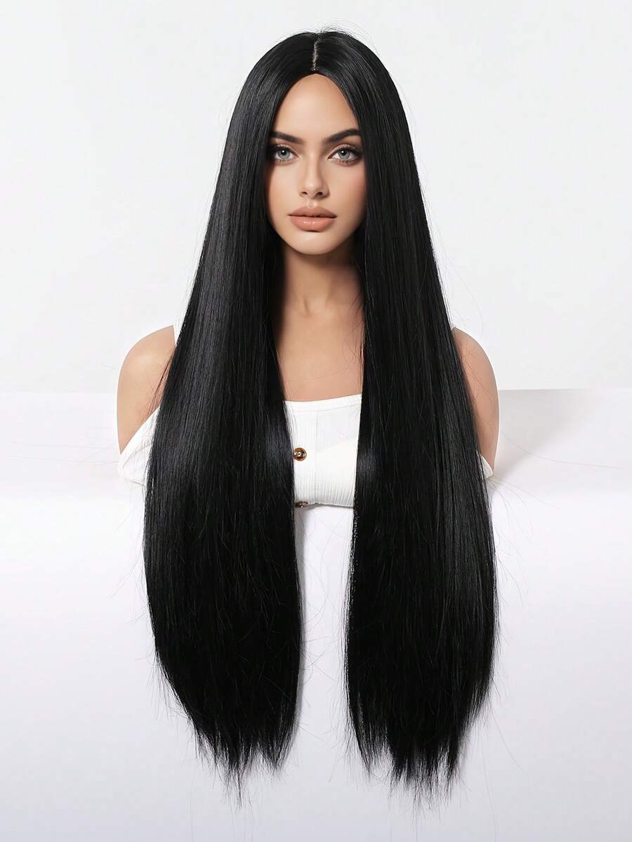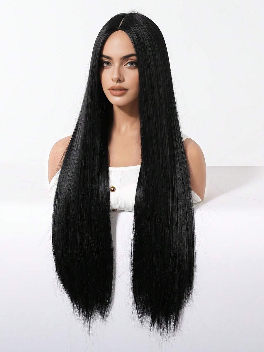 💇♀️✨ باروكة شعر طويلة مستقيمة – أسود طبيعي للسيدات ⚫