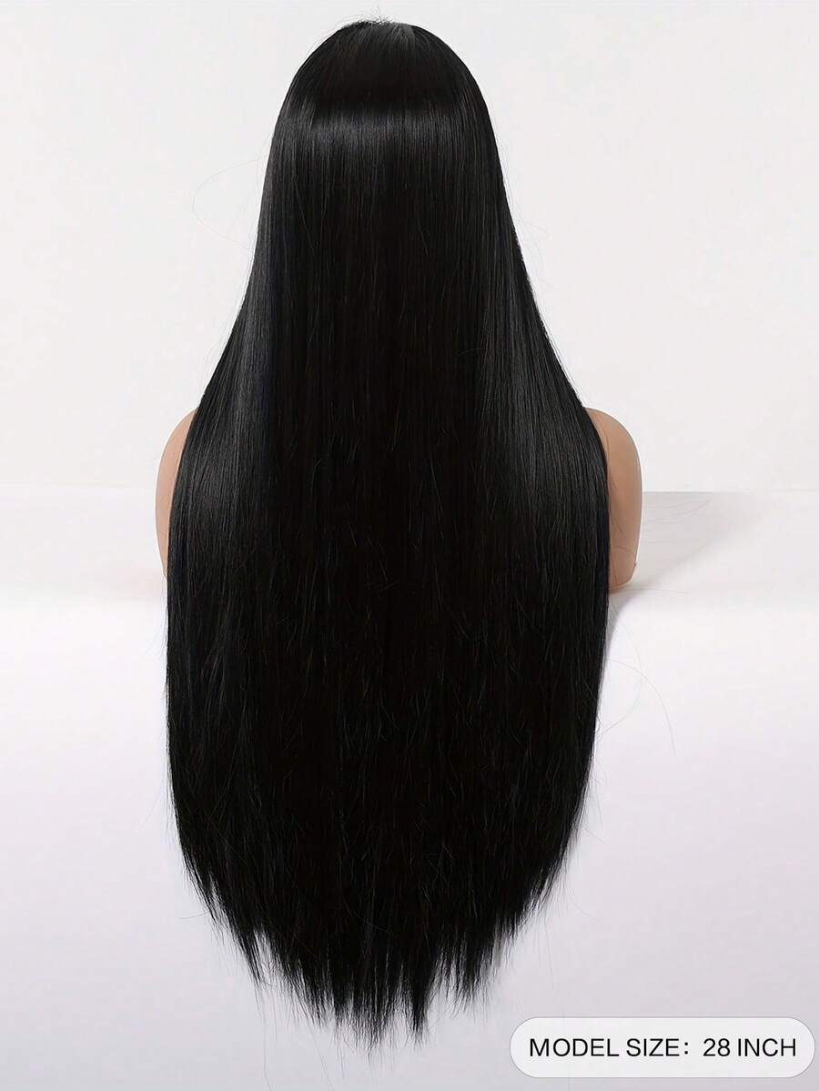 SHEIN باروكة صناعية طويلة سوداء 28 بوصة مقاومة للحرارة