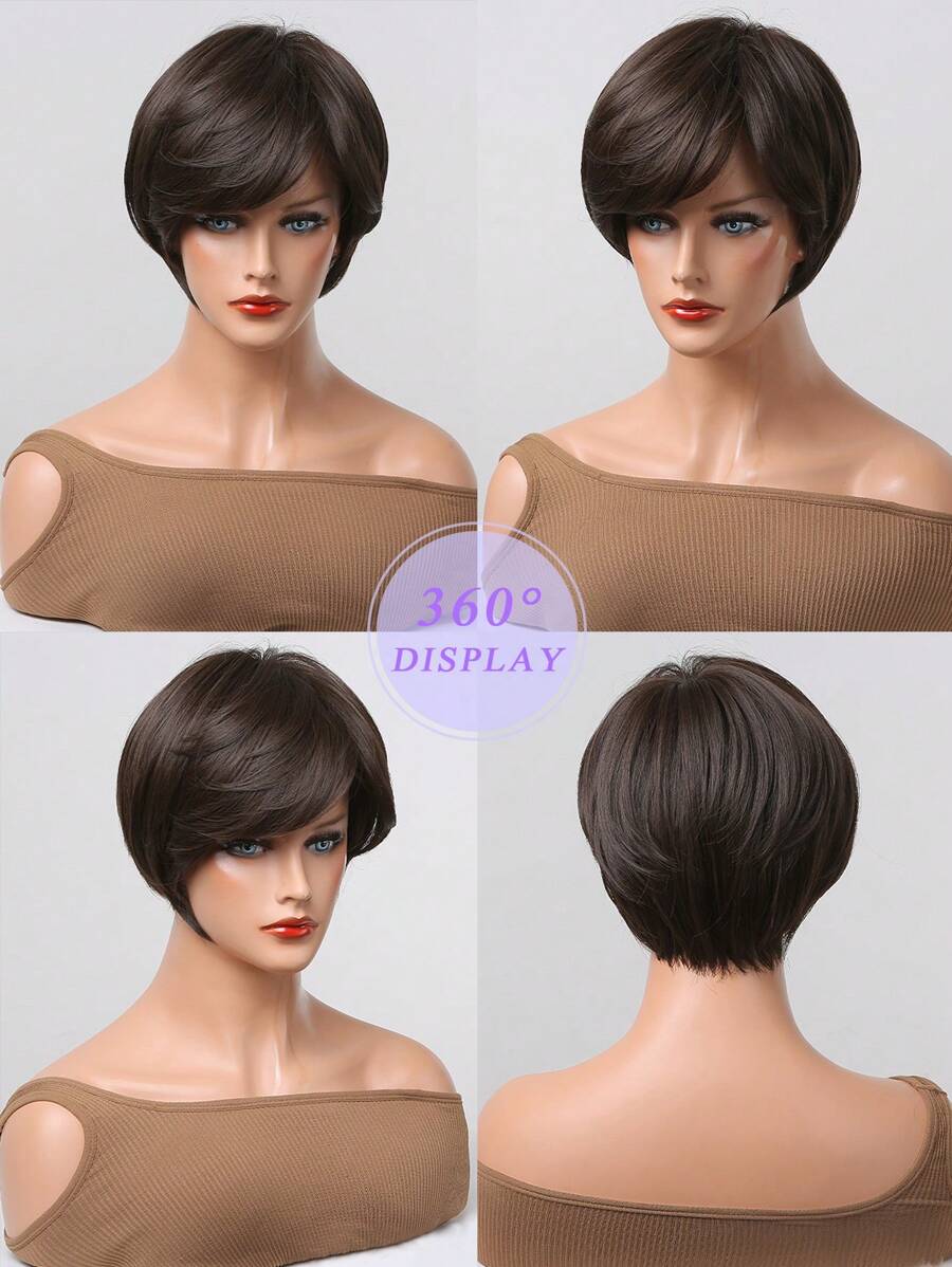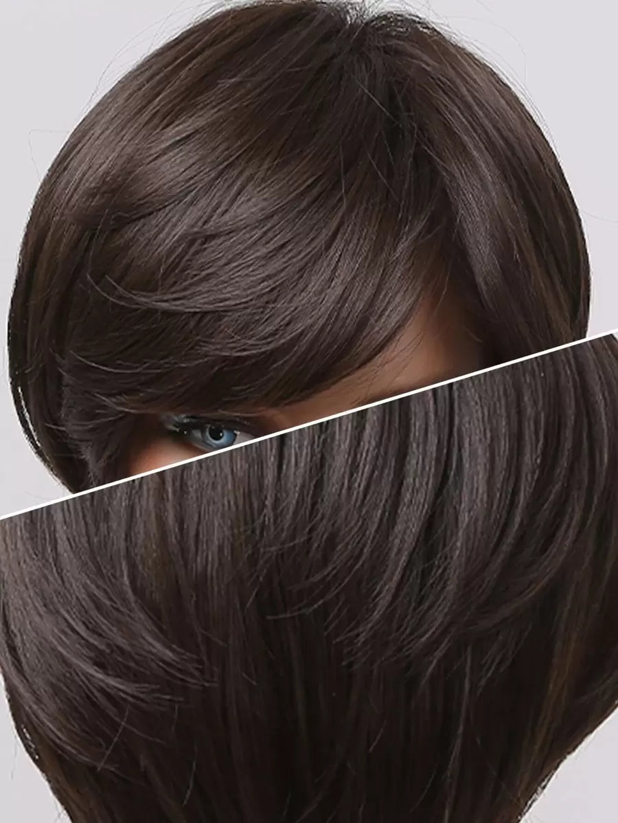 SHEIN باروكة صناعية قصيرة مستقيمة 10 بوصة مع غرة