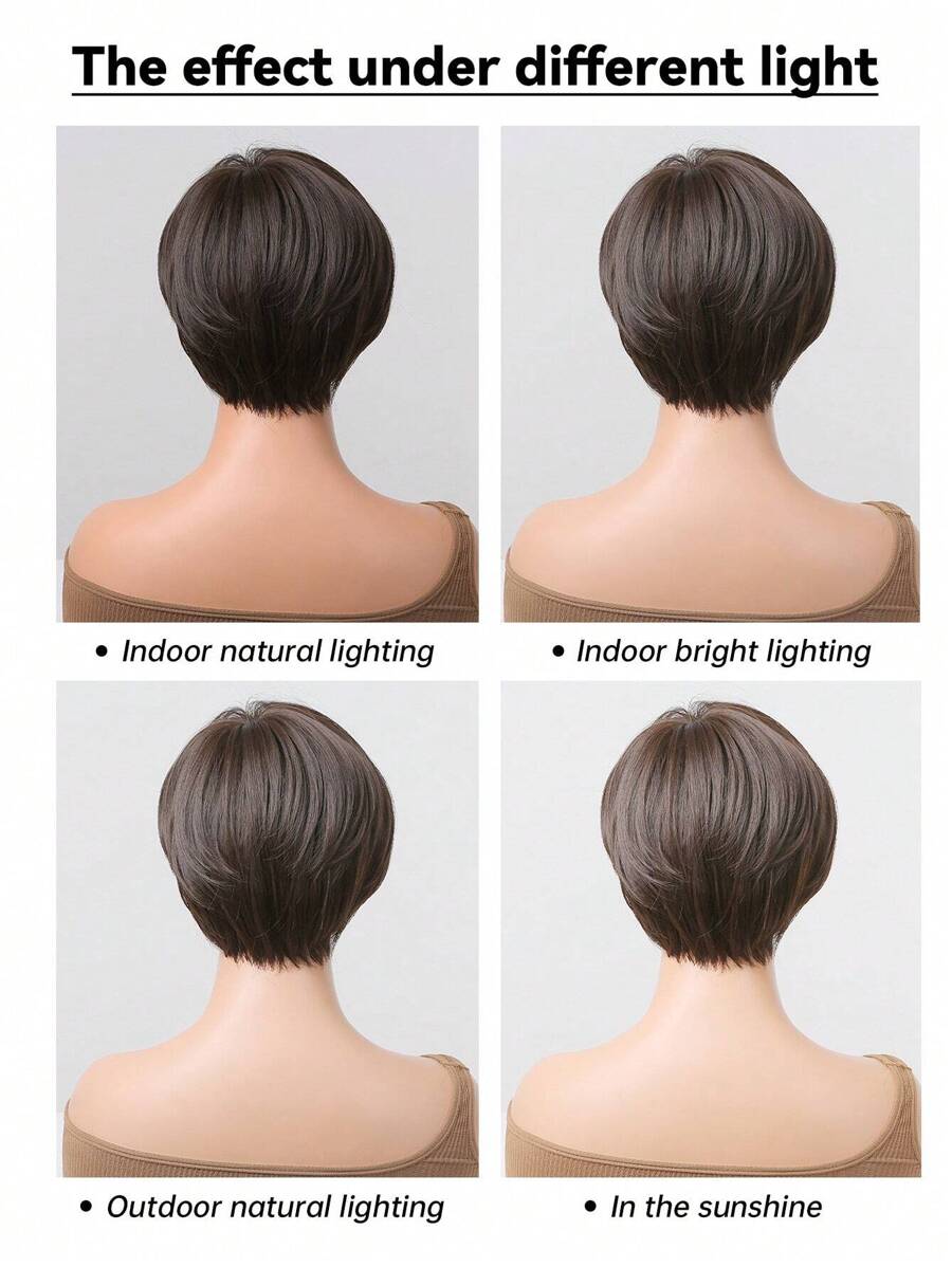 💇♀️✨ باروكة قصيرة مستقيمة – بني طبيعي للسيدات 🌰